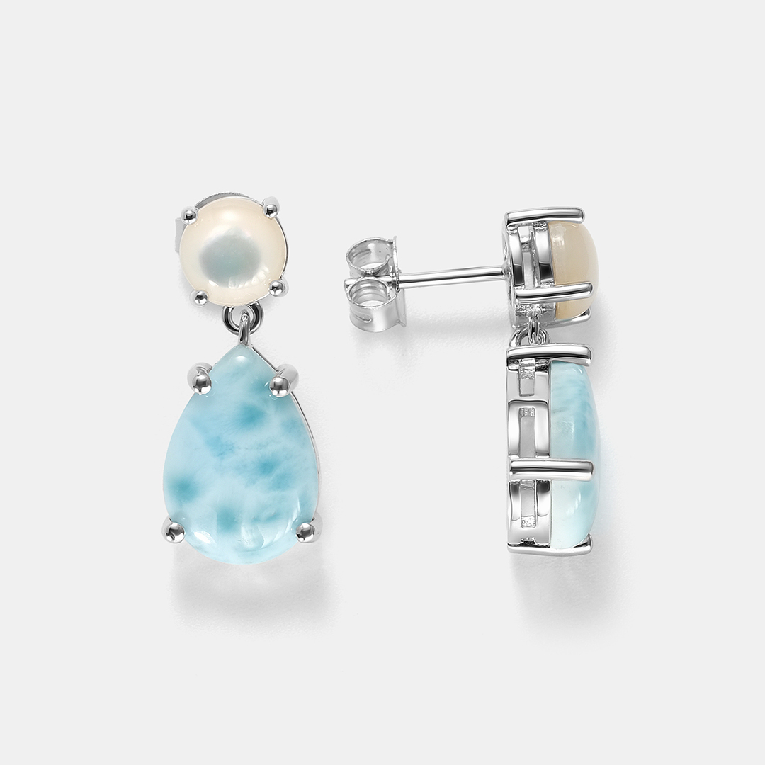 Серебряные серьги с ларимарами и перламутром
