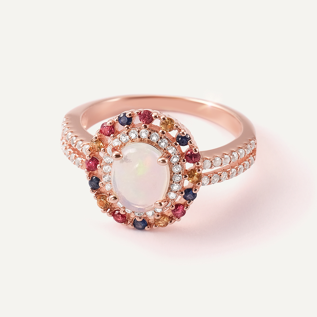 Серебряное кольцо с опалом и мультисапфирами