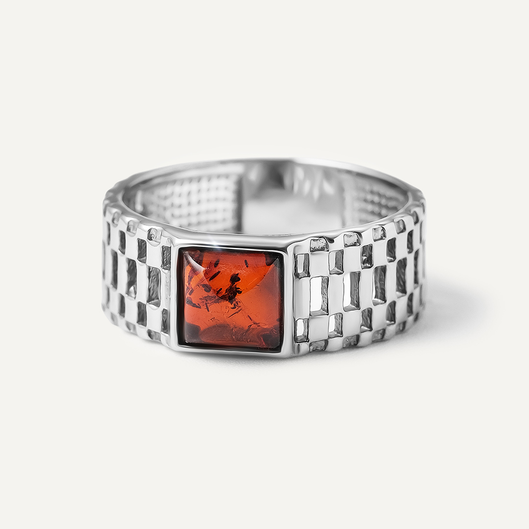 Серебряное кольцо с янтарем