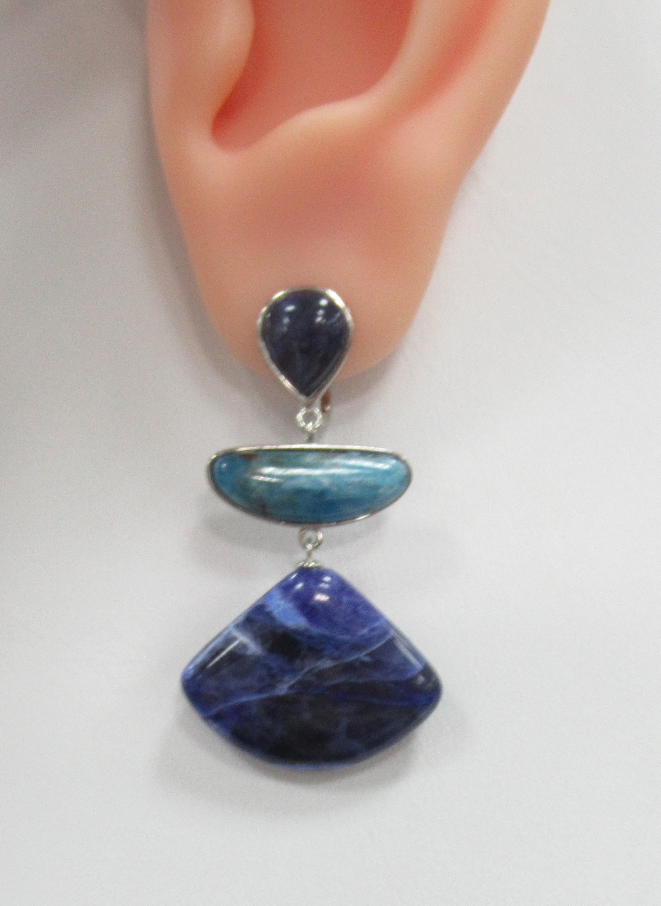 Серебряные серьги-пусеты с апатитами Параиба