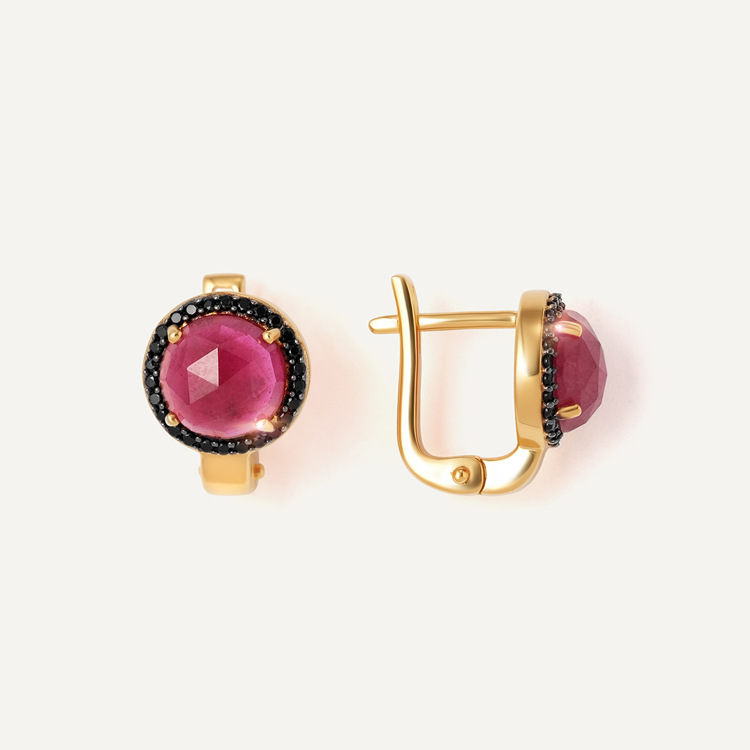 Серьги-пусеты из комбинированного золота с бриллиа...