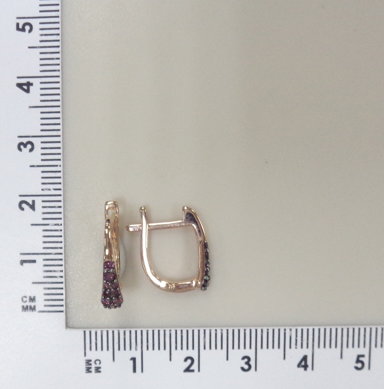 Золотые серьги-пусеты 585 пробы; родий; вставки 2 Бр.коньяч.Кр-57 0,218 7/5А