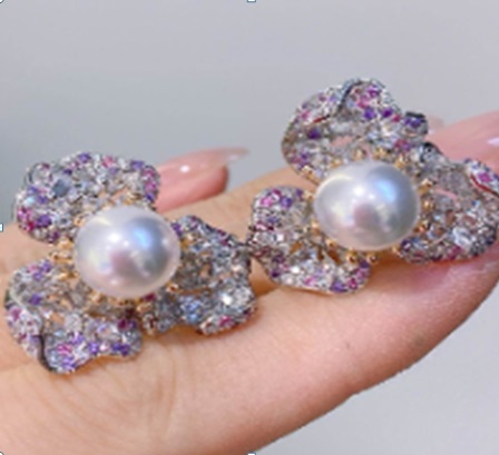 Серебряные серьги с изумрудами, сапфирами и рубина...