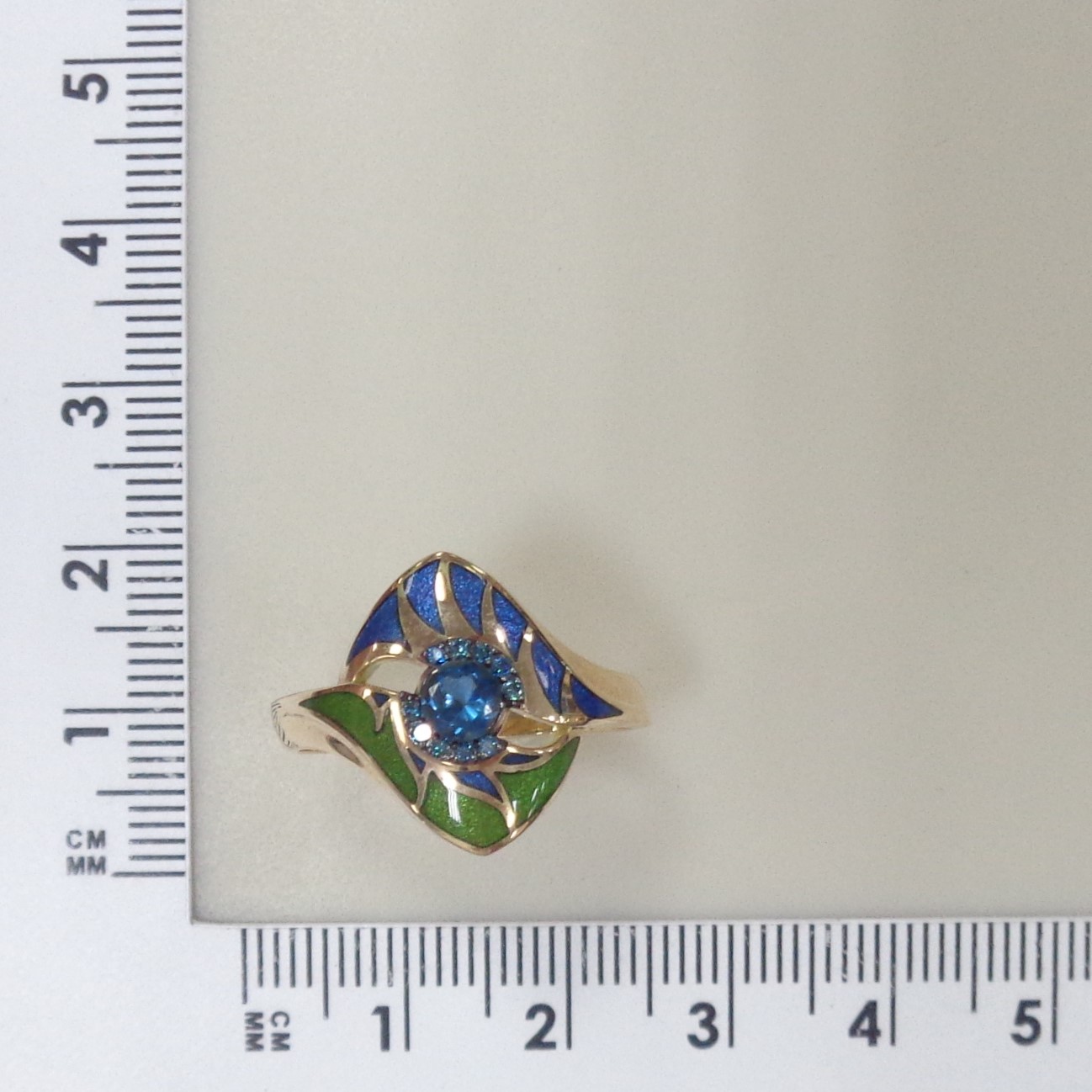 Золотое кольцо 585 пробы; вставки 2 Топаз sky; 1 Фианит голубой;