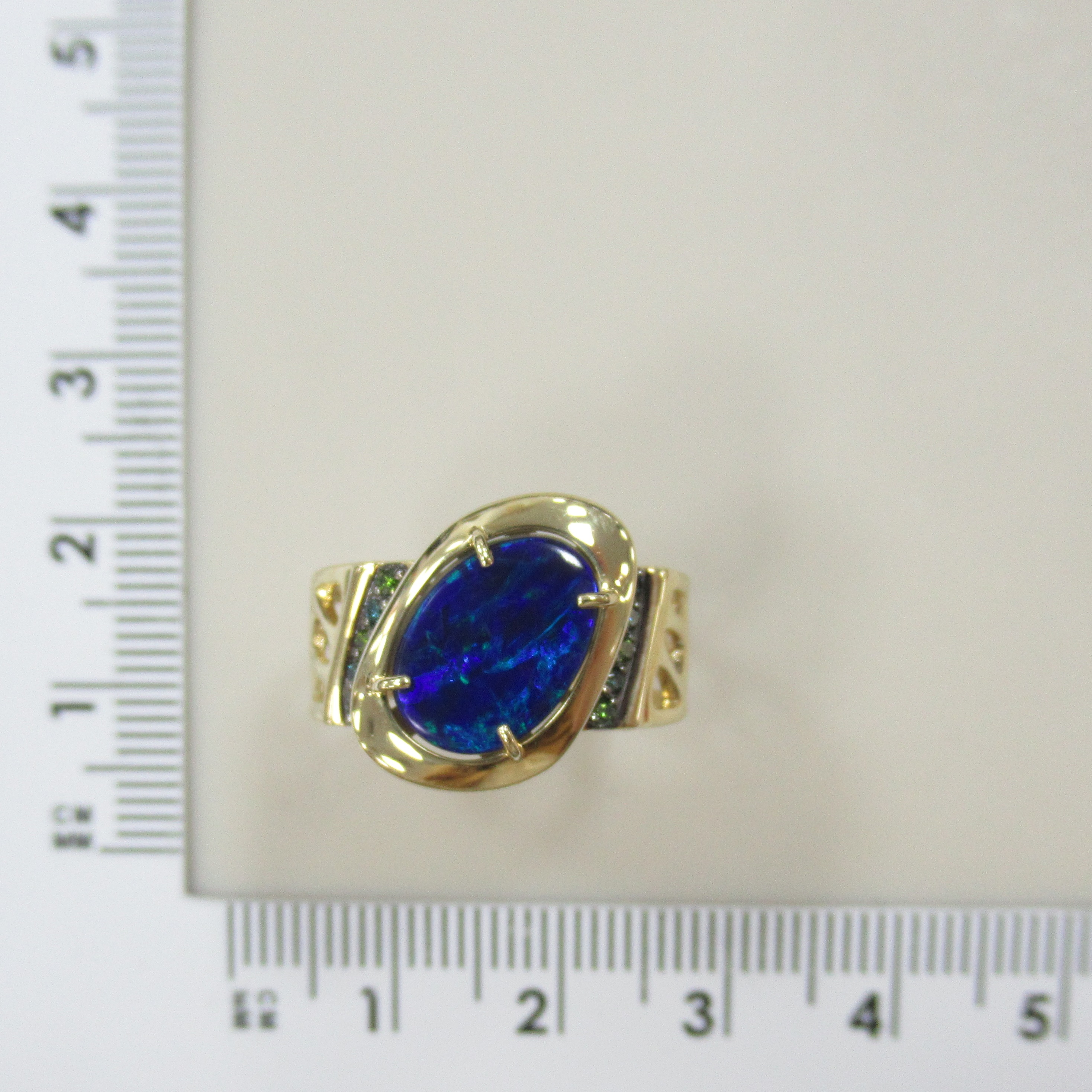 Кольцо из желтого золота с сапфиром и бриллиантом "Крестик и клевер"