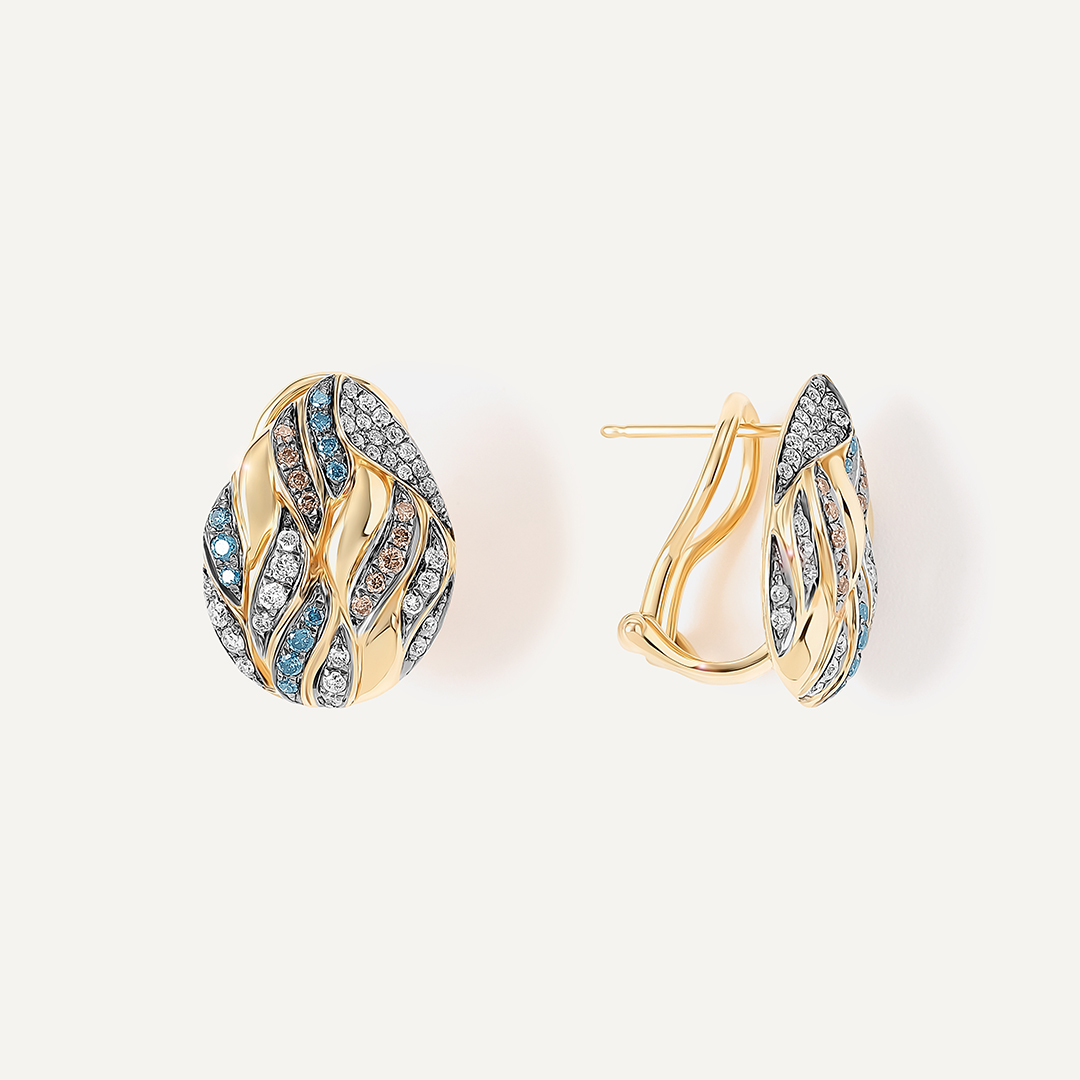 Серьги-пусеты из комбинированного золота с бриллиа...