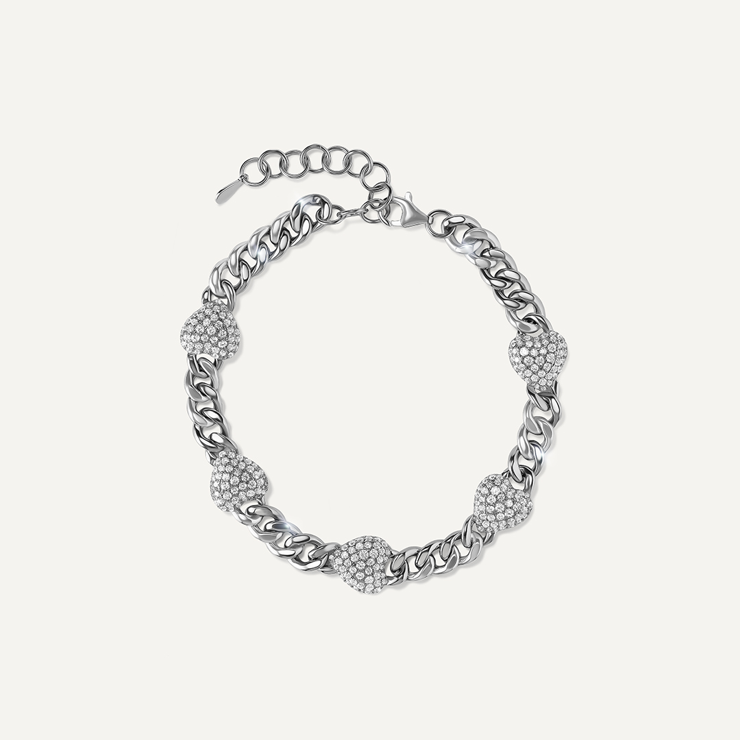 Серебряный браслет с кубическим цирконием "Сердца"