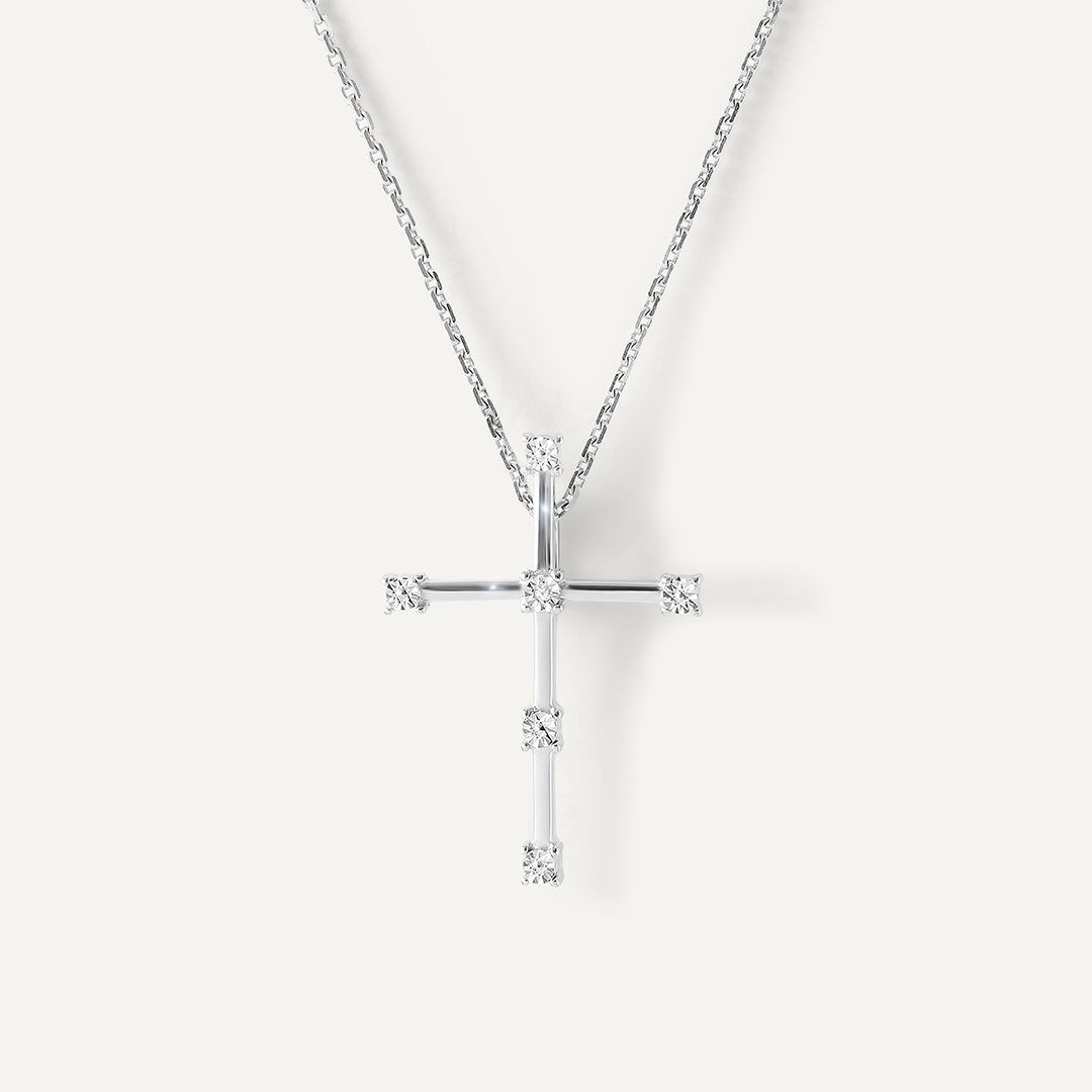 Серебряная подвеска-крест с бриллиантом