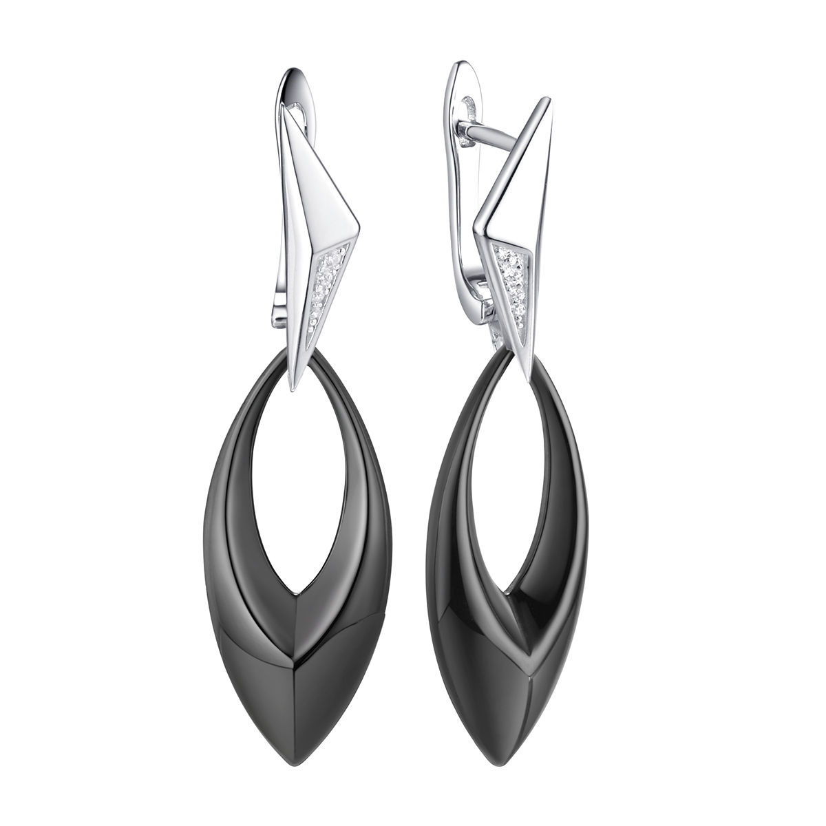 Золотые серьги-пусеты 585 пробы; родий (бел.,черн.); вставки 36 Бр.Кр-17 0,164 2/3А; 42 Бр.черн.(HPH