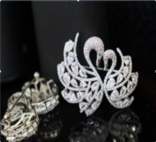 Браслет из бижутерного сплава белого цвета; незамкнутый; жесткий; вставки 4 Куб. Цирконий бесцв.;