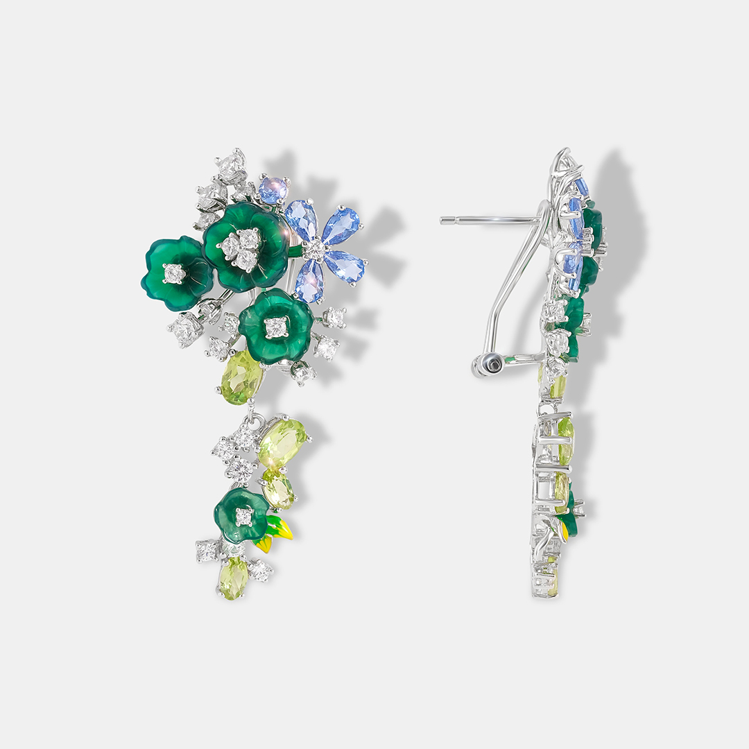 Серебряные серьги с халцедонами "Цветы"