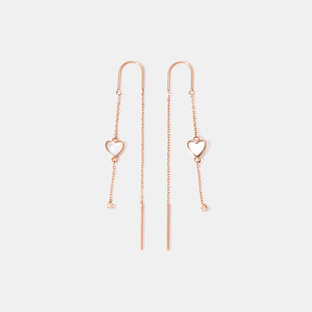 Серьги-протяжки из золота с перламутром "Сердца"
