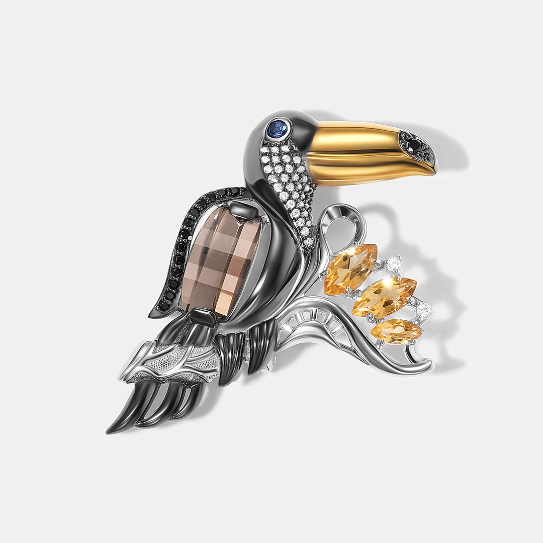 Золотое кольцо 585 пробы; желтое золото; родий черн.; вставки 4 Бр.коньяч.Кр-57 0,018 7/5А; 8 Бр.кон