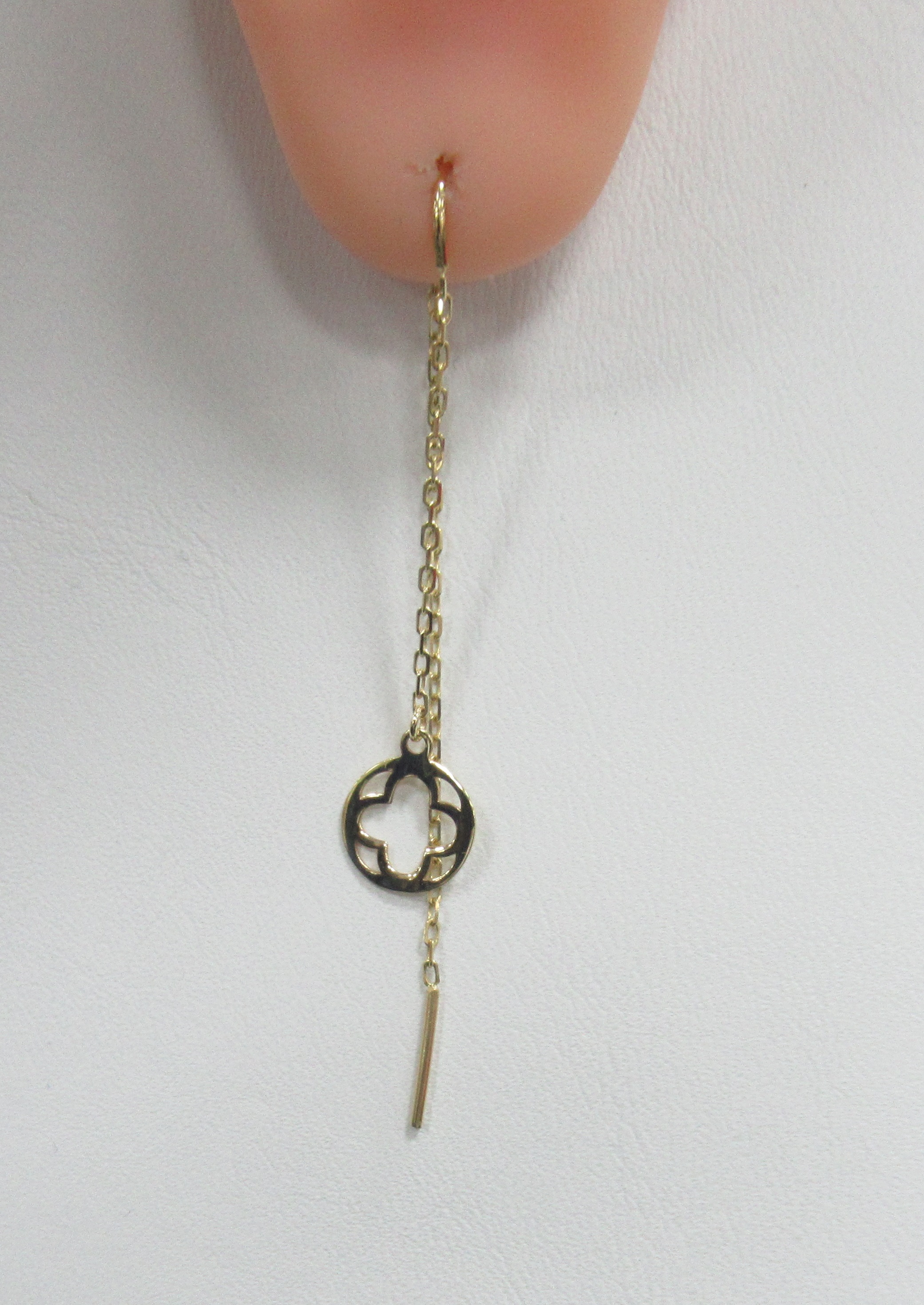 Золотые серьги-протяжки 585 пробы; желтое золото; плетение Якорное;