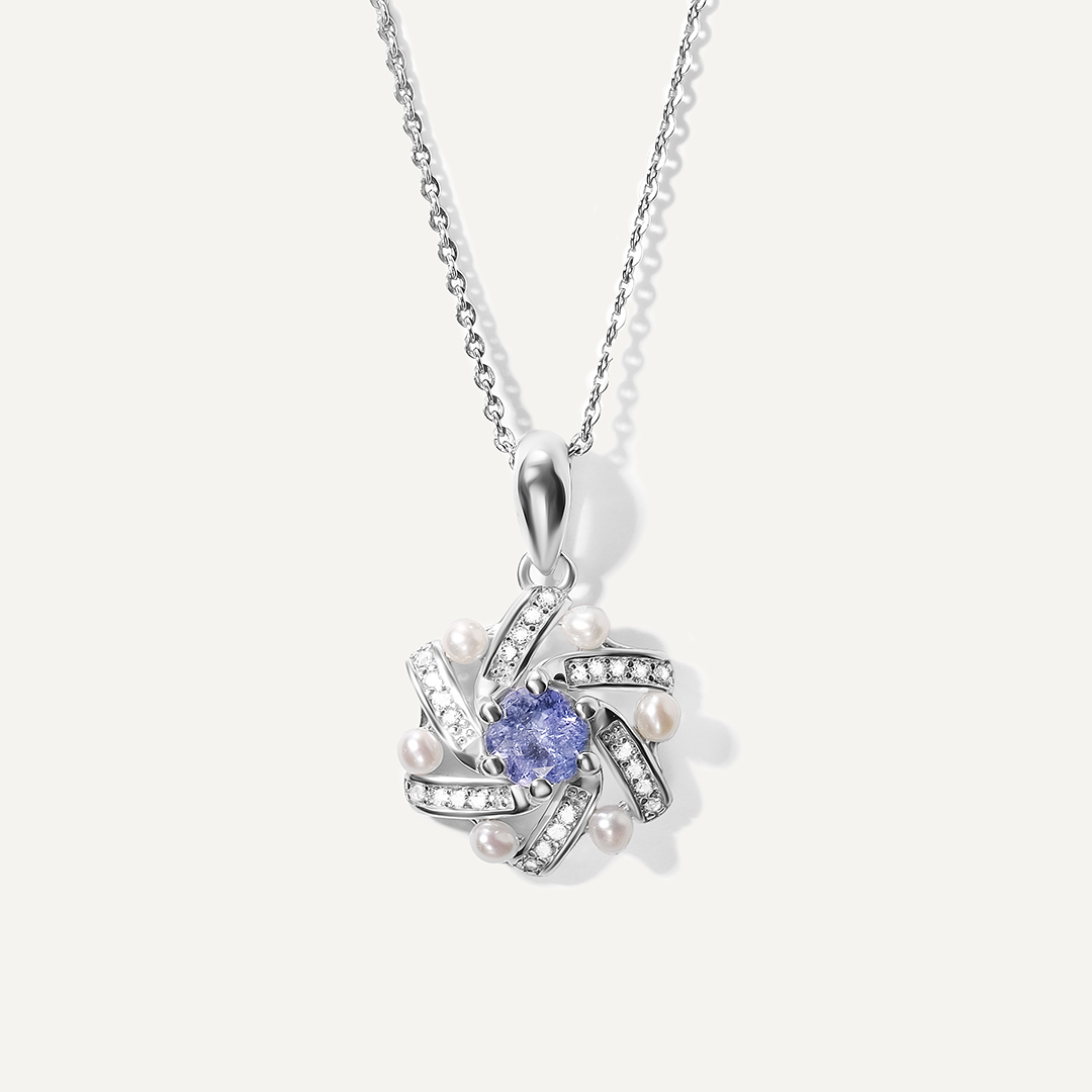 Колье из белого золота с розовым жемчугом и бриллиантами