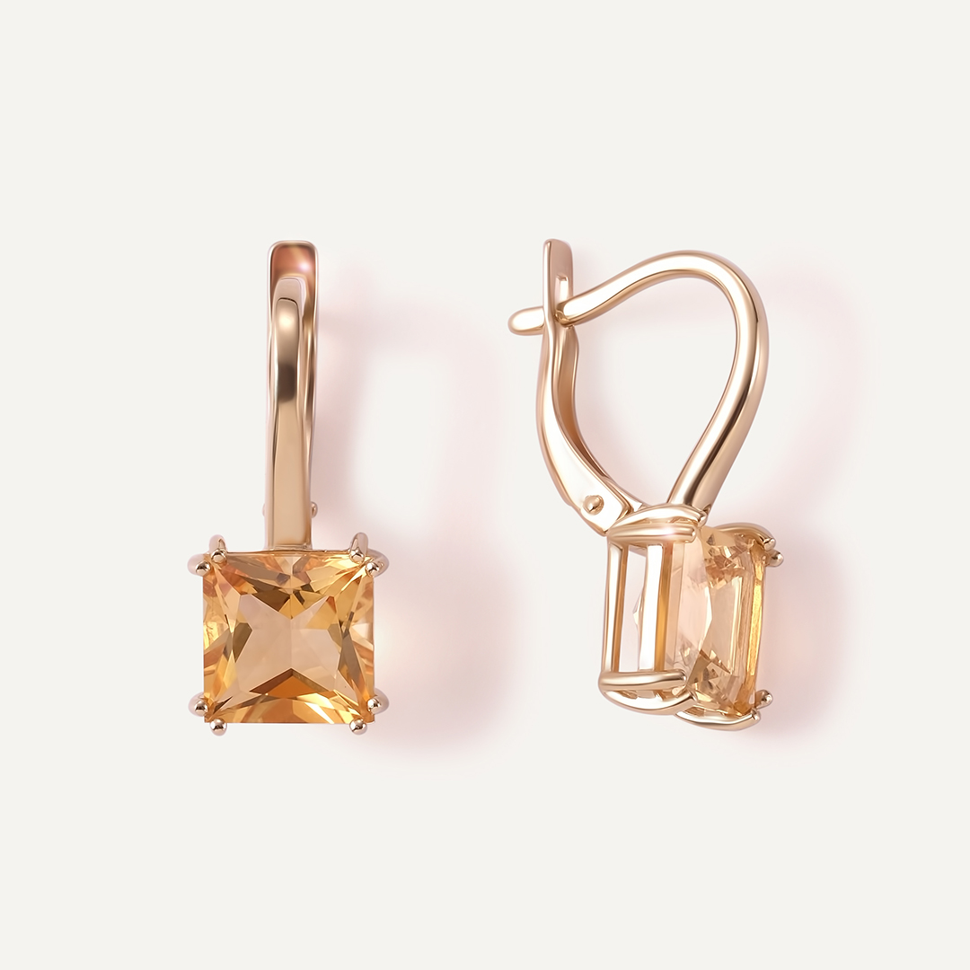 Серьги из желтого золота с цитринами