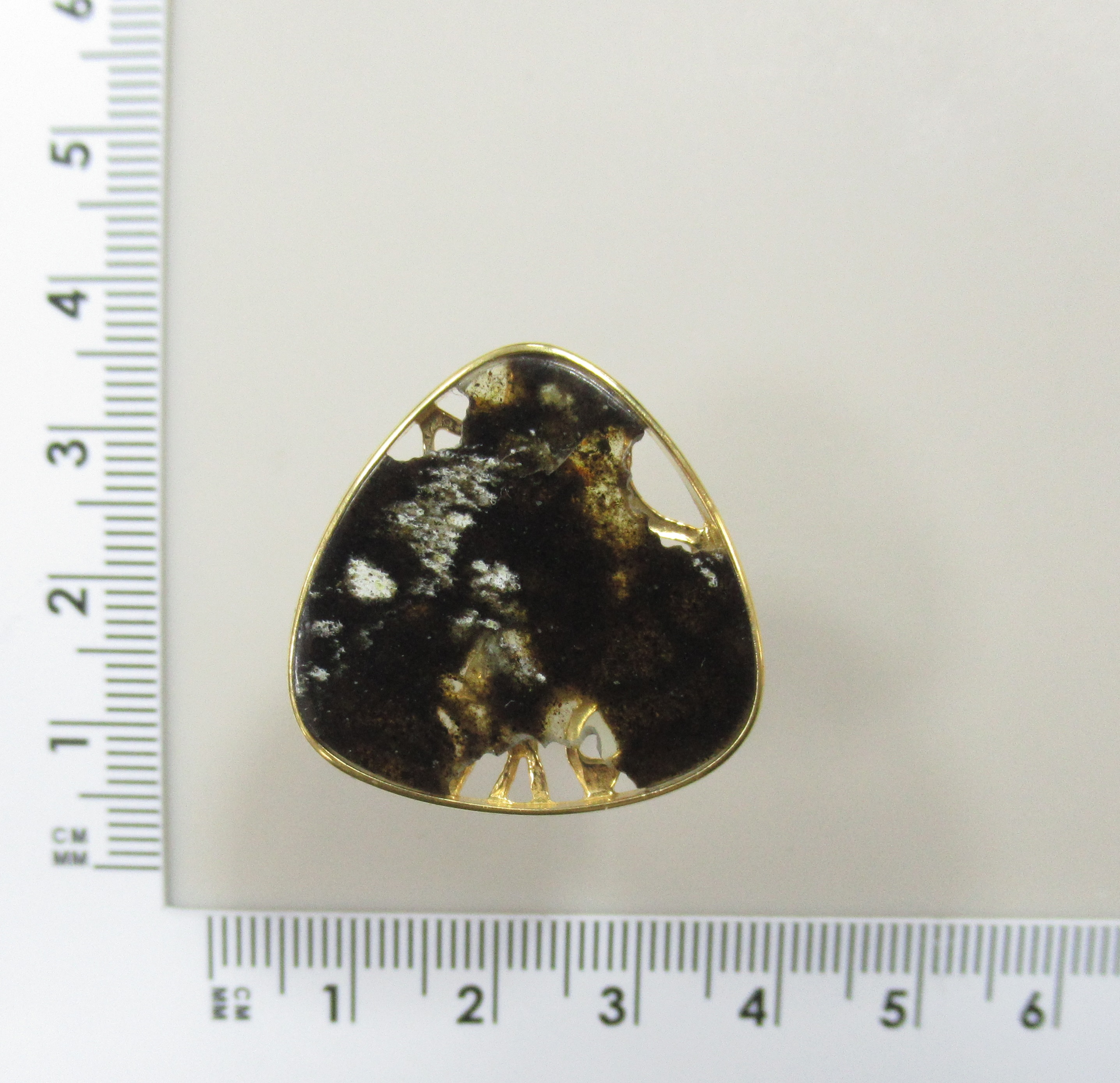 Серебряное кольцо с зеленым янтарем "Рыба"