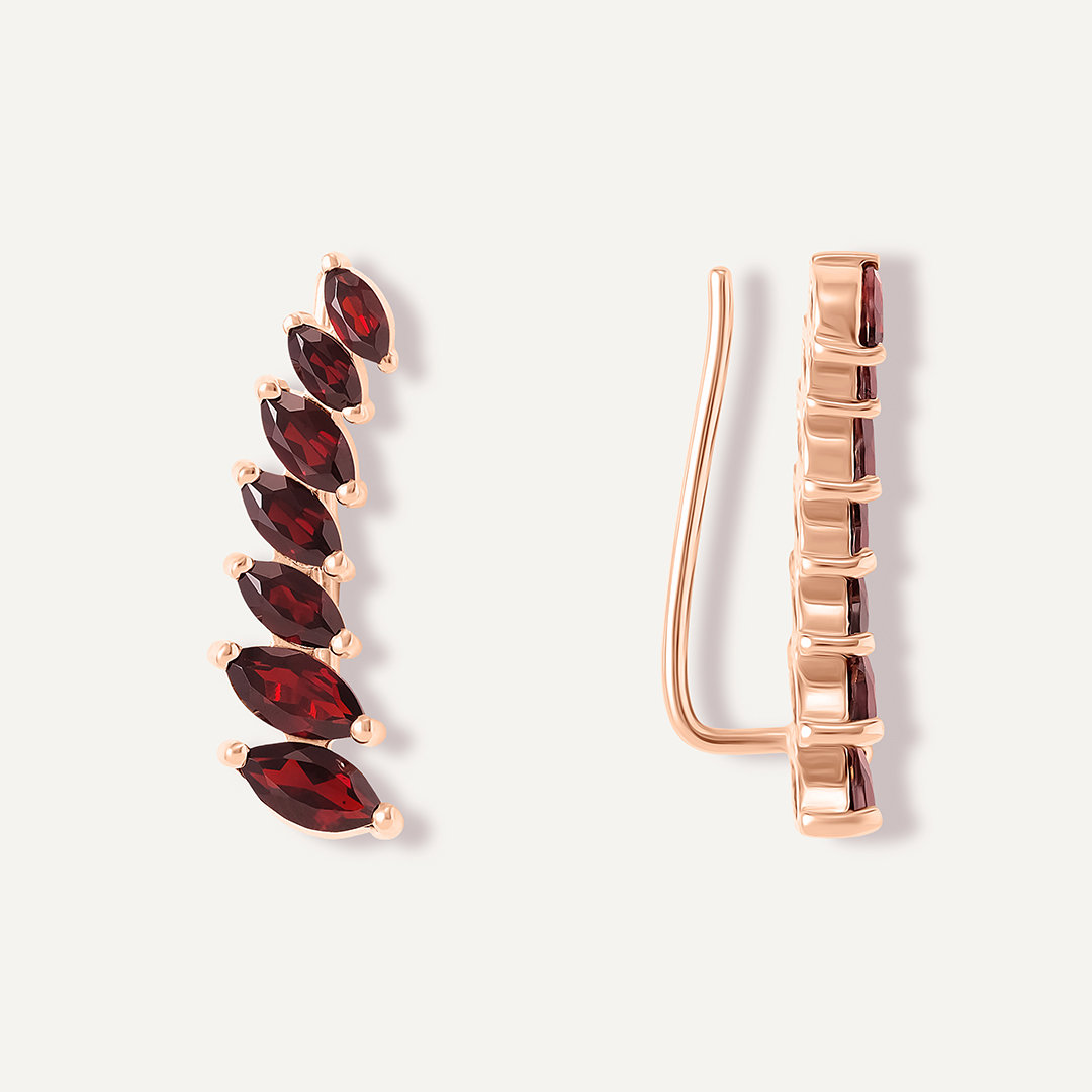 Серебряные серьги-каффы с гранатами