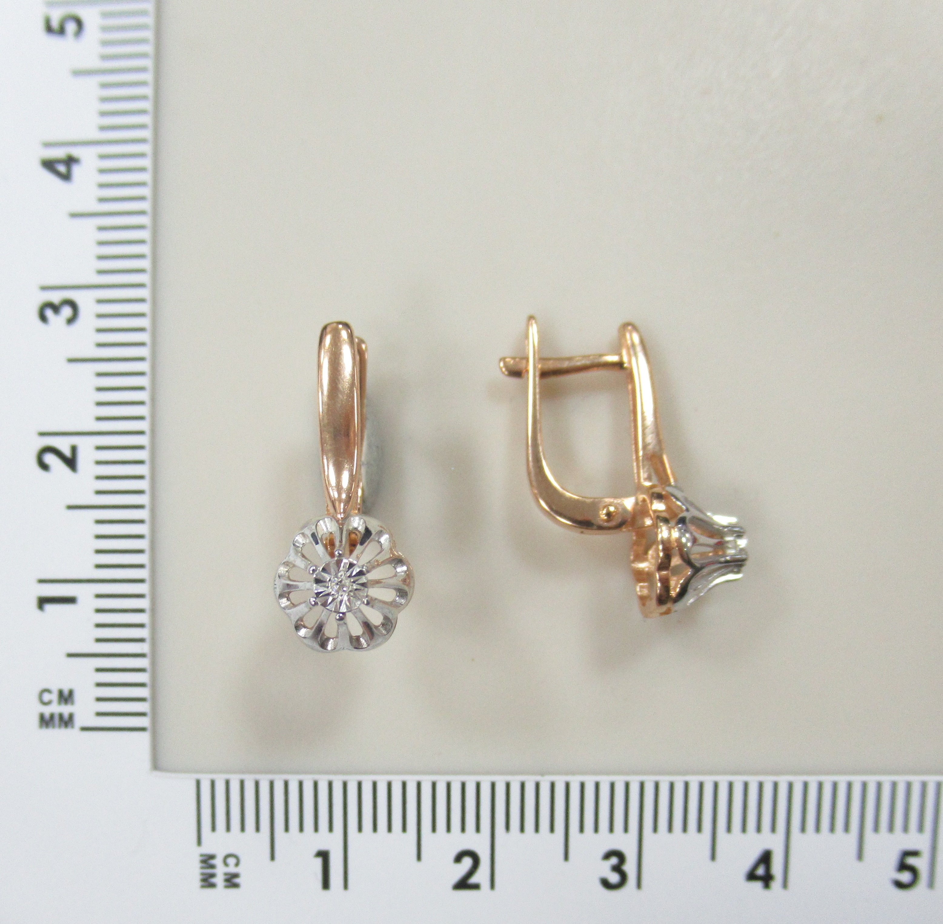 Серьги-пусеты из комбинированного золота с бриллиа...