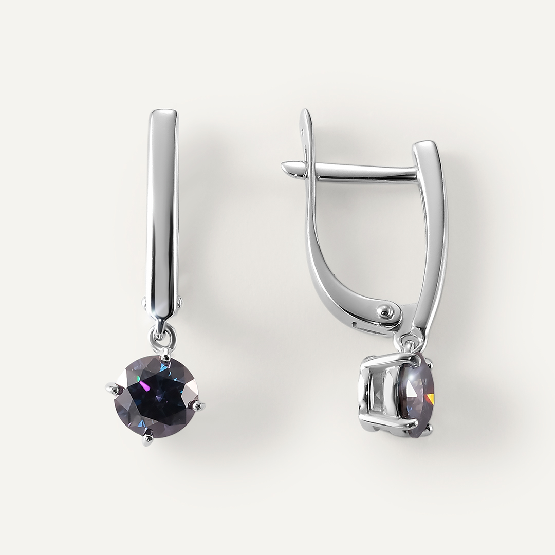 Серебряные серьги с фиолетовыми муассанитами