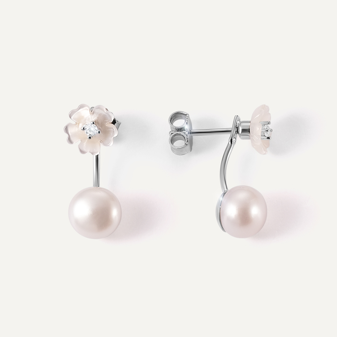 Серебряные серьги-трансформеры с жемчугом "Цветы"