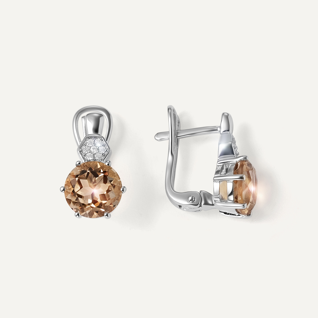 Серебряные серьги-протяжки с розовыми бриллиантами "Клевер"