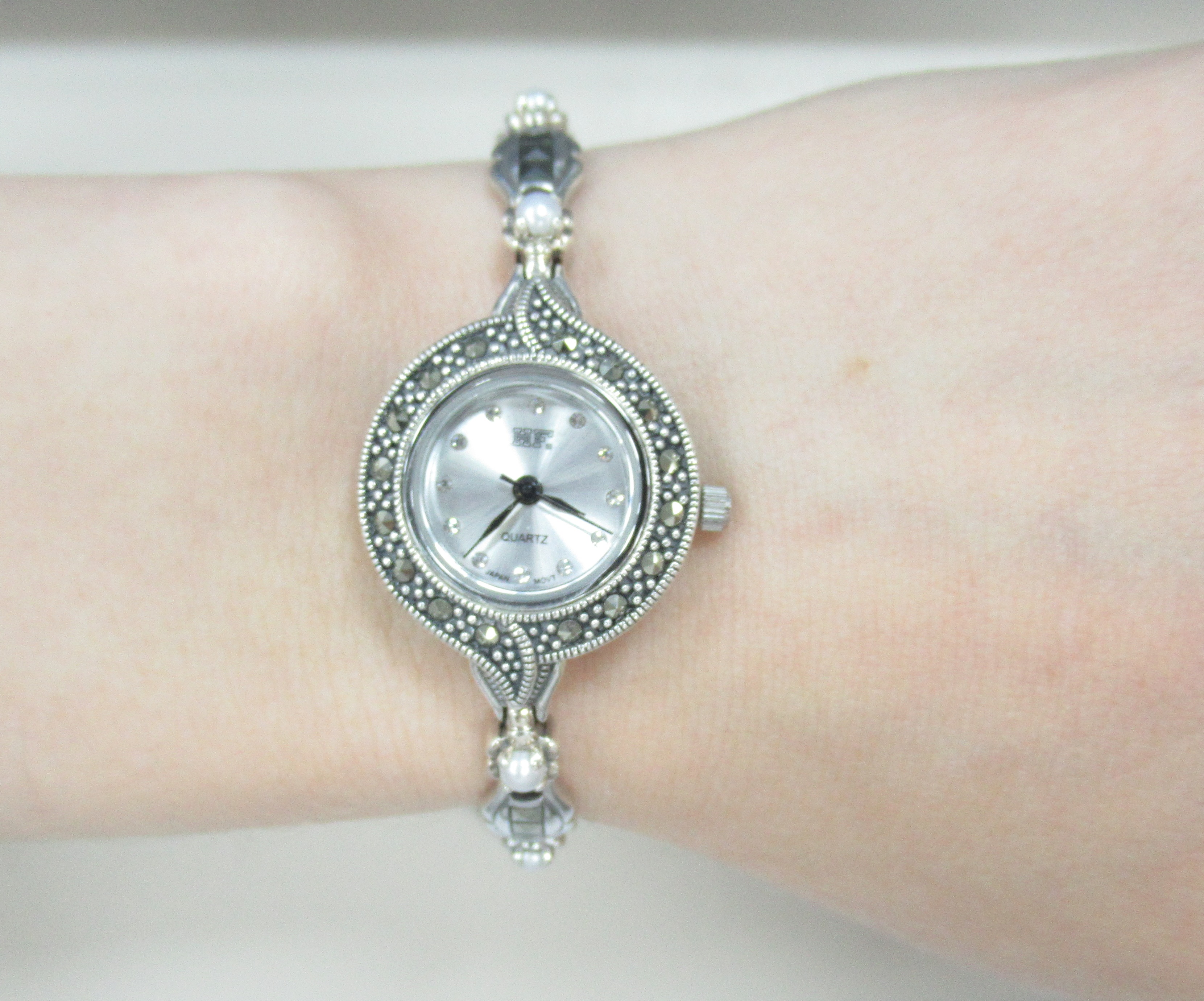 Серебряные часы с гранатами и марказитами "Пантеры"
