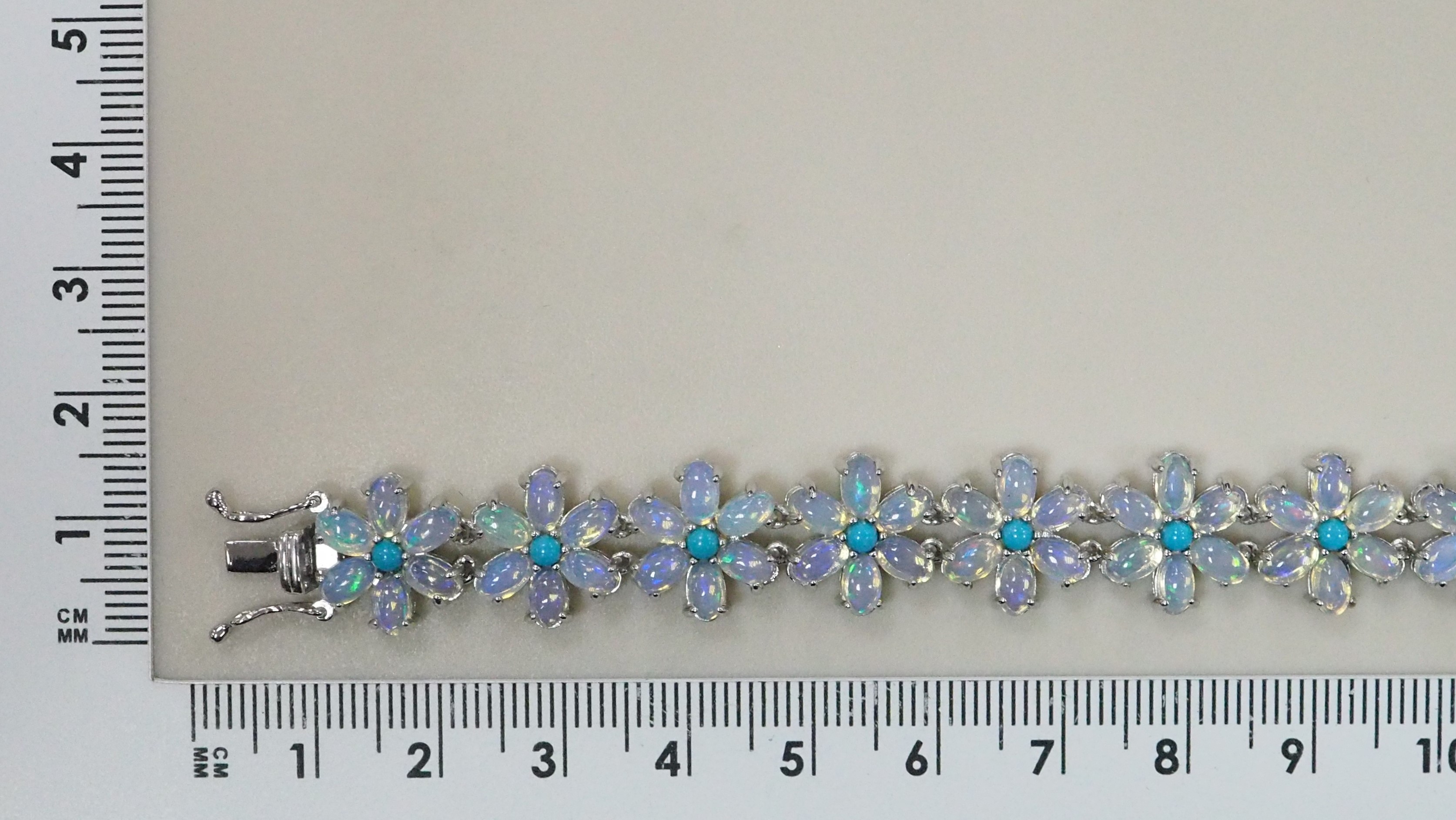 Серебряный браслет с бирюзой и опалами "Цветы"
