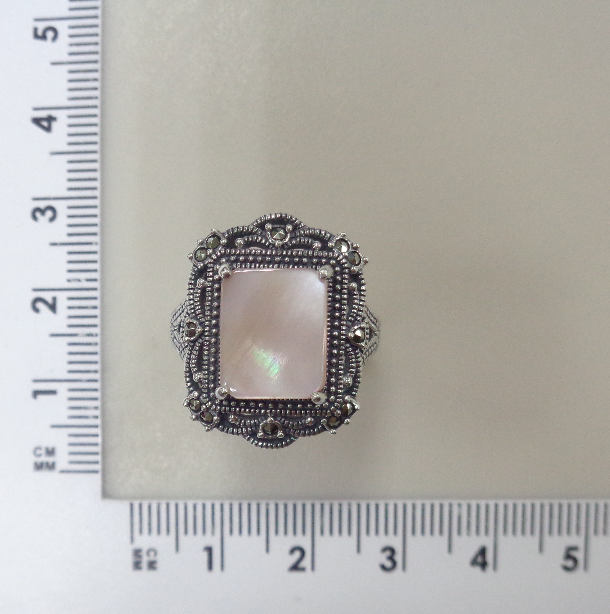 Серебряное кольцо с гранатом и марказитами "Собака"