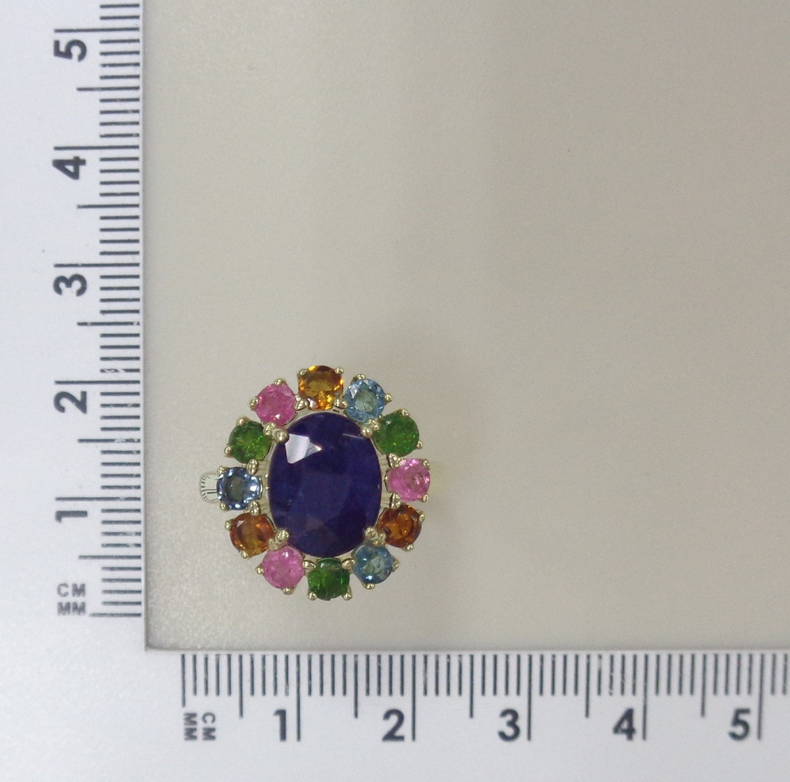 Золотое кольцо 585 пробы; желтое золото; родий; вставки 1 Топаз swiss;