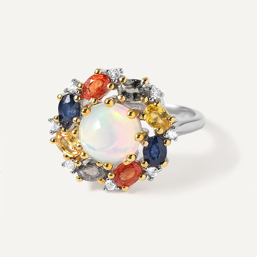 Серебряное кольцо с опалом и мультисапфирами "Цветок"
