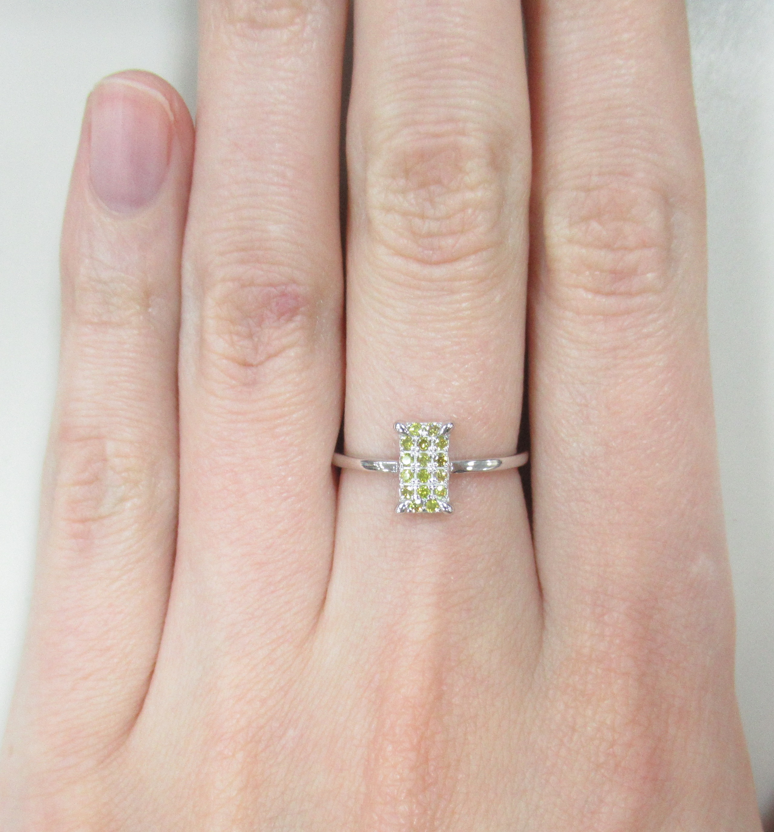 Серебряное кольцо 925 пробы; вставки 1 Пл. Кварц Перидот; 41 Фианит бесцв.;