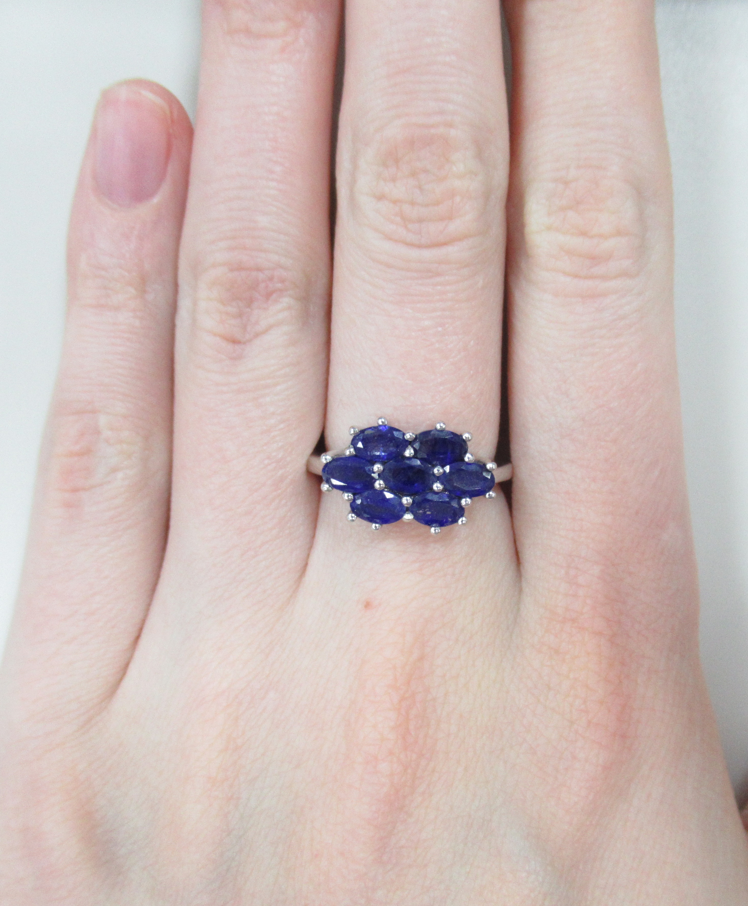 Серебряное кольцо с танзанитами и сапфиром "Цветок"