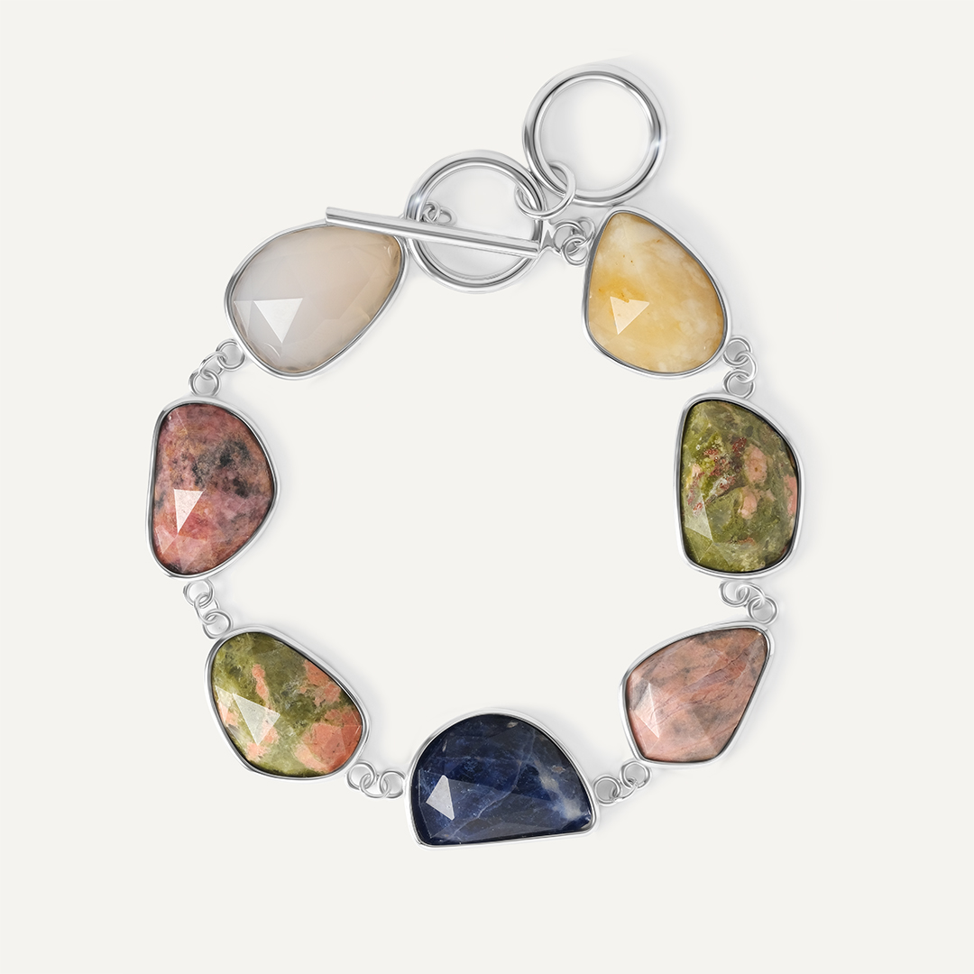 Серебряный браслет с самоцветами