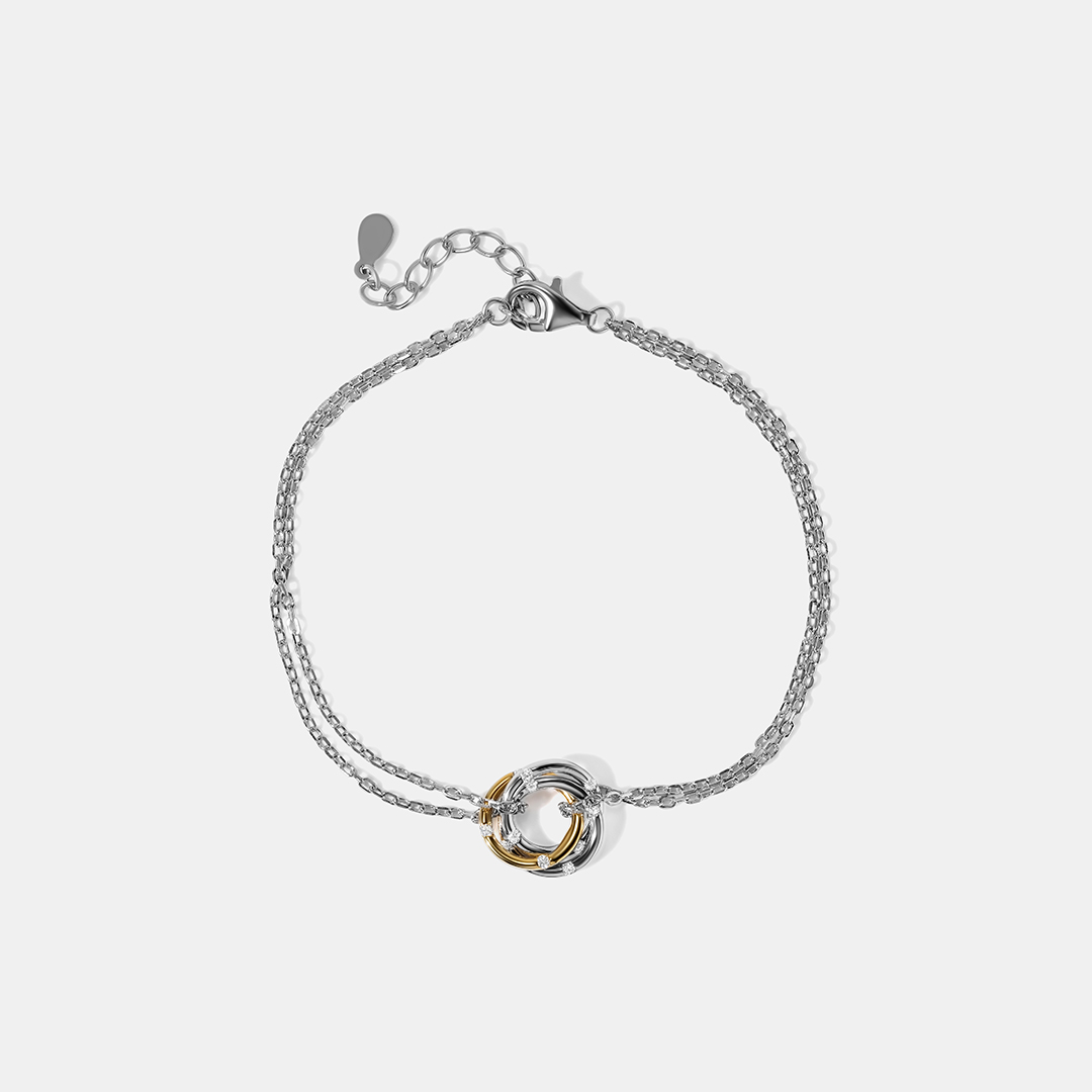 Серебряный браслет с янтарем и эмалью "Цветы"