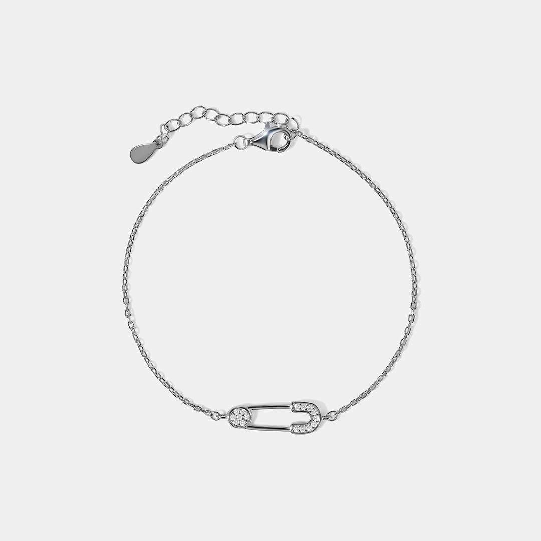 Серебряный жесткий незамкнутый браслет с кубическим цирконием