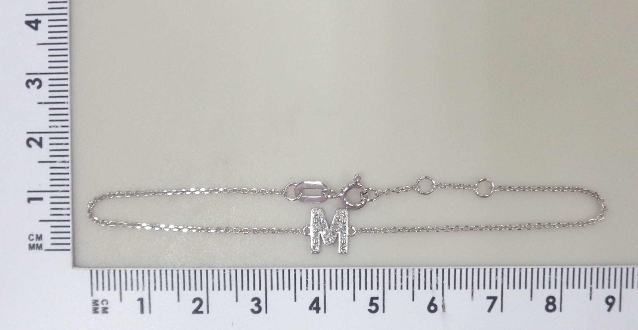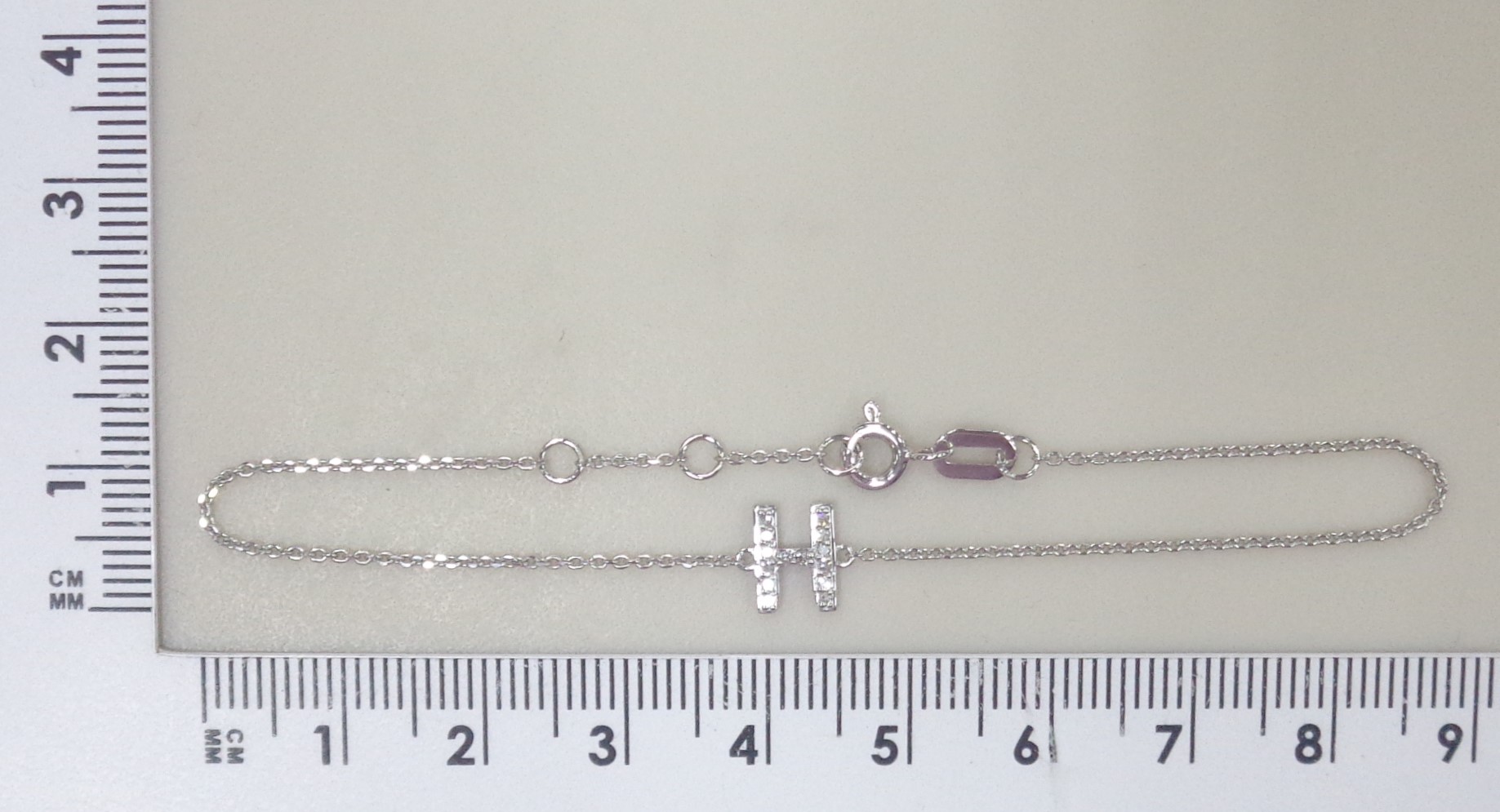 Золотой браслет 585 пробы; родий; плетение Якорное; вставки 3 Бр.Кр-57 0,061 3/6А; 4 Бр.Кр-57 0,051