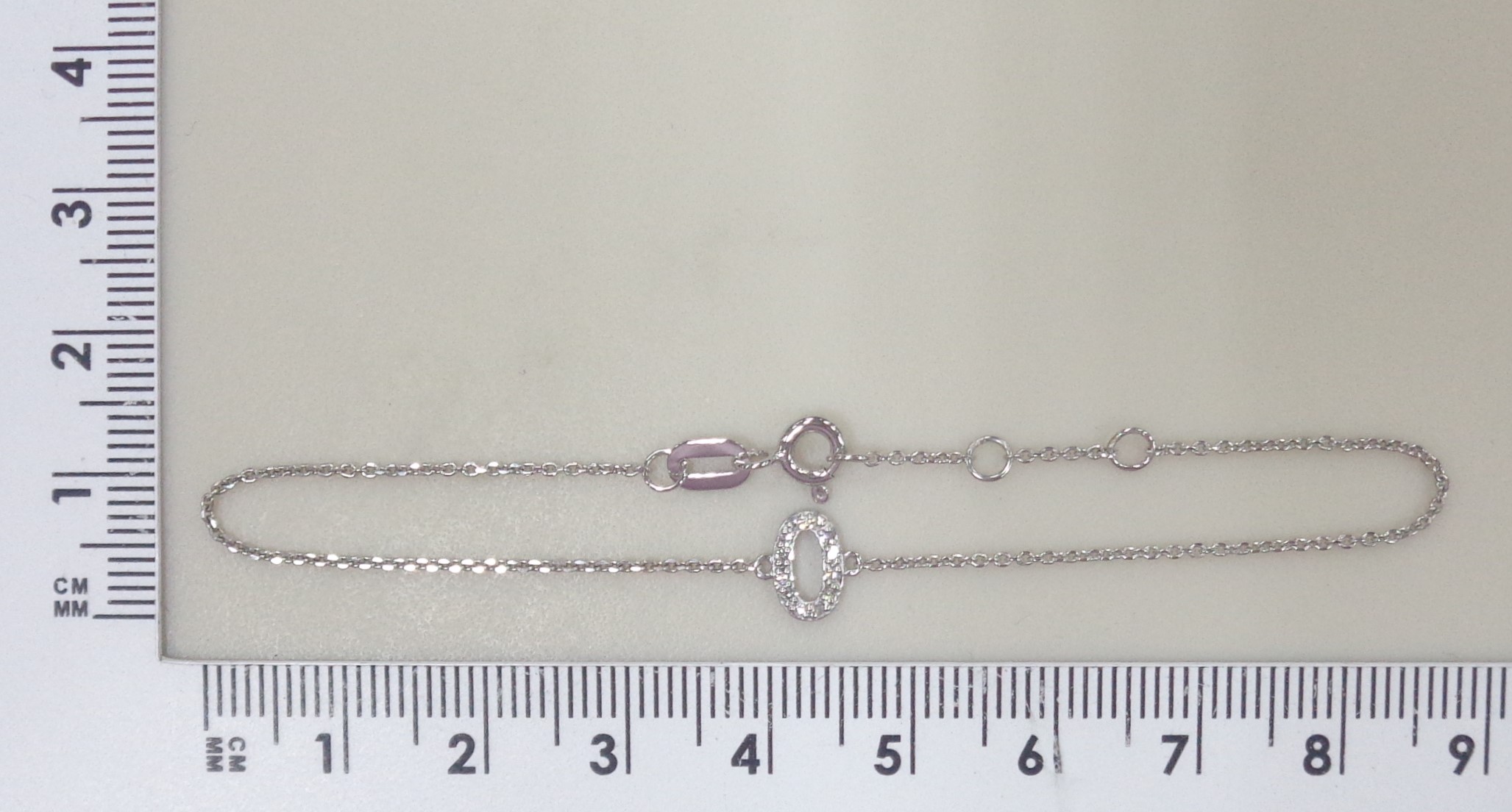 Золотой браслет 585 пробы; белое золото; родий; плетение Якорное; вставки 12 Бр.Кр-17 0,057 2/2А; 3
