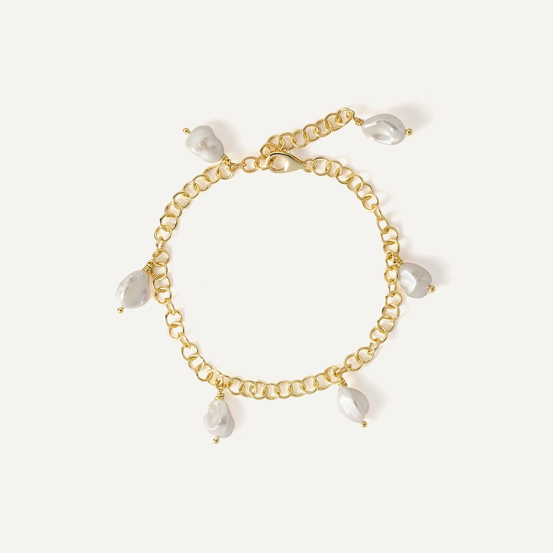 Браслет из желтого золота с жемчугом Кеши "Сердце"