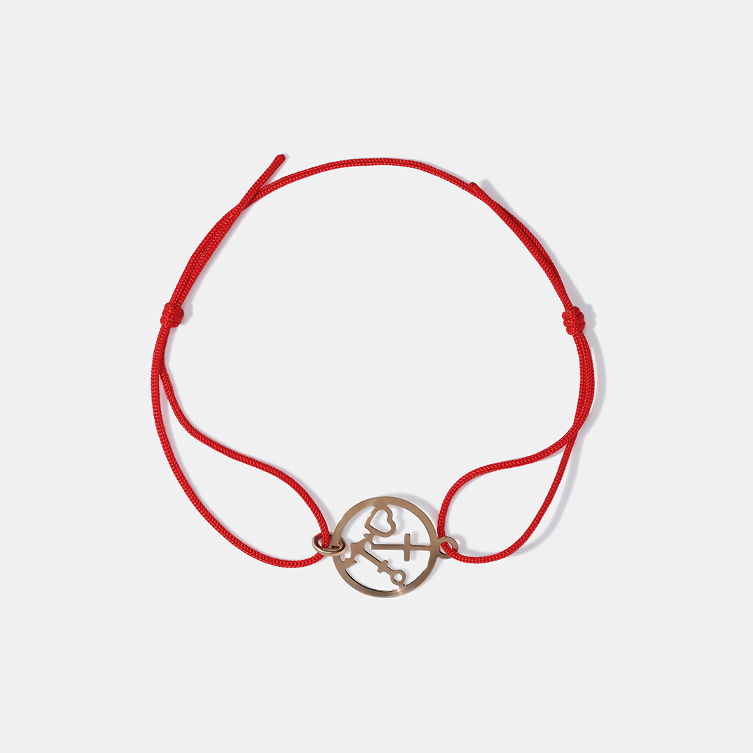 Браслет из золота "Вера, Надежда, Любовь" на красной нити