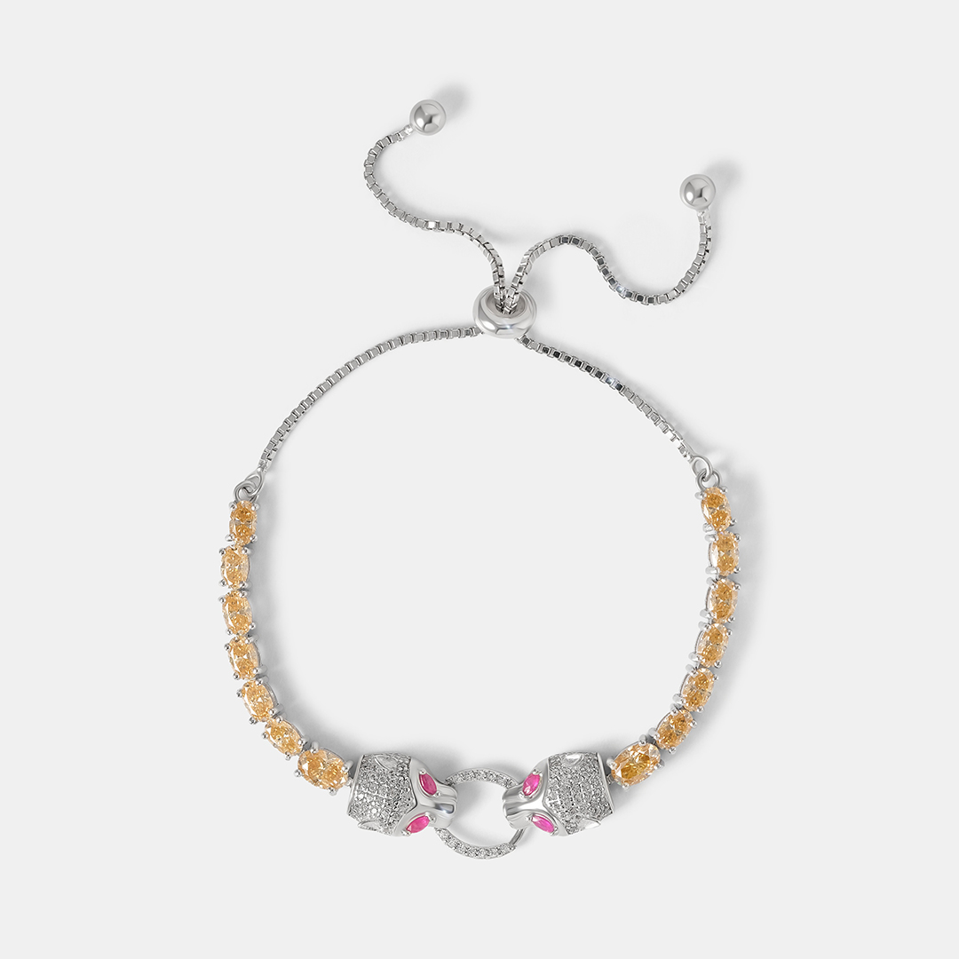 Серебряный браслет с цитринами и рубинами "Пантеры"