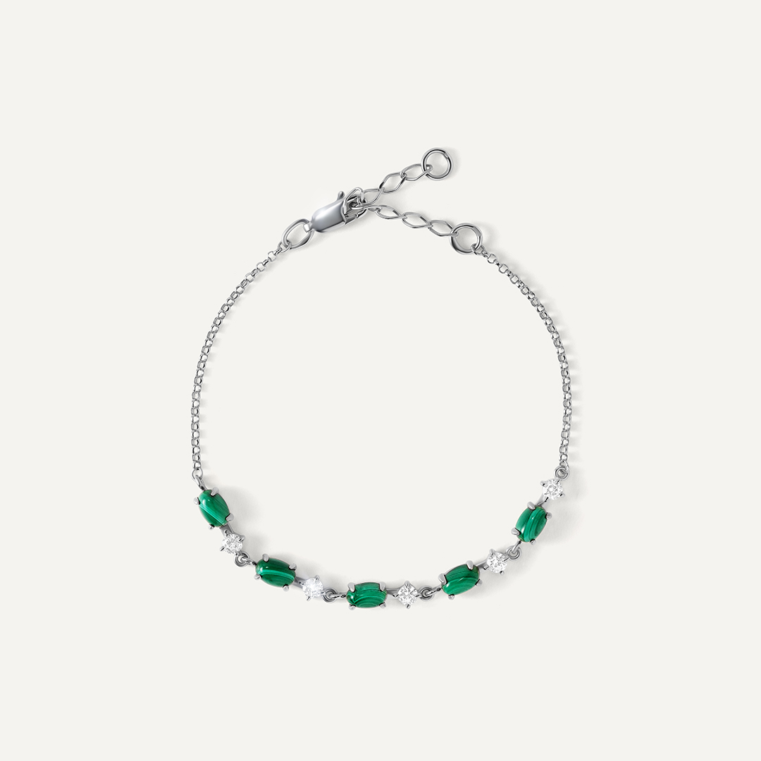 Серебряный браслет с малахитами