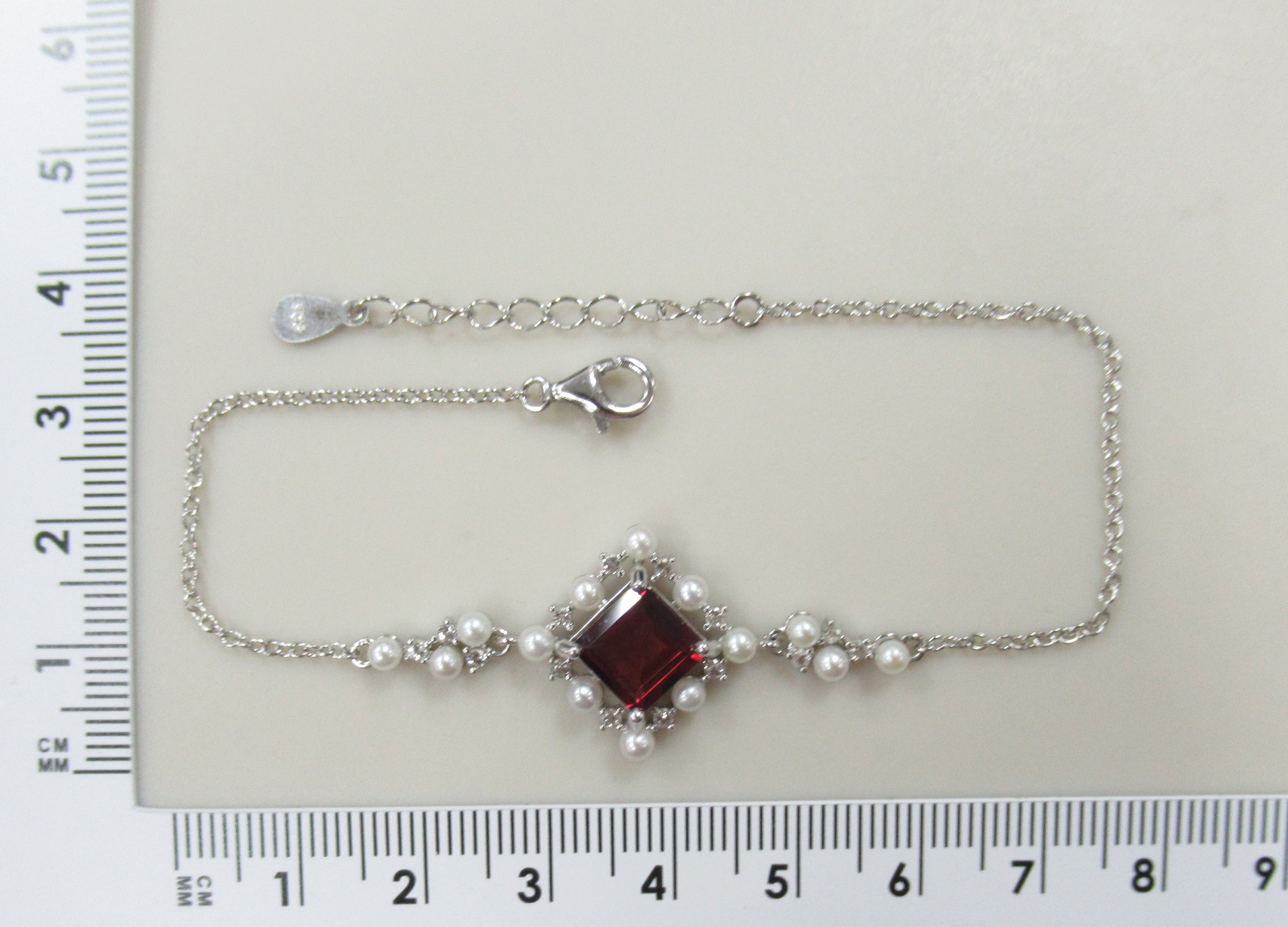 Серебряный браслет с гранатом и жемчугом