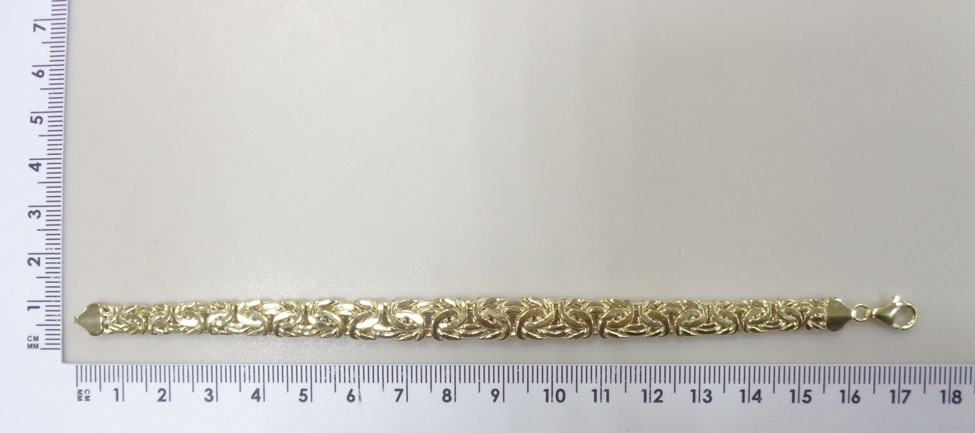 Золотой браслет 585 пробы; желтое золото; плетение Якорное; вставки 16 Агат зеленый;
