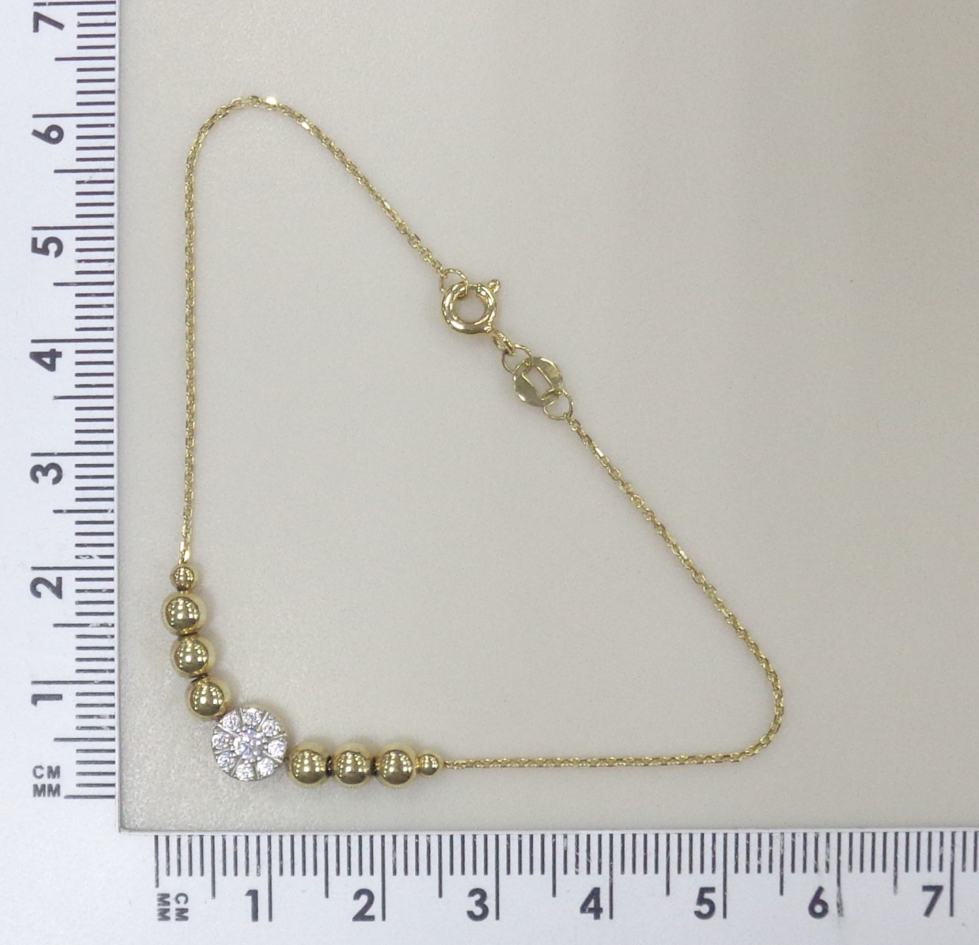 Золотой браслет 585 пробы; желтое золото; плетение Якорное; родий; вставки 9 Фианит бесцв.;
