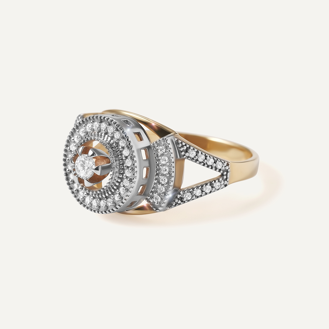 Золотое кольцо 585 пробы; родий; вставки 13 Фианит бесцв.;