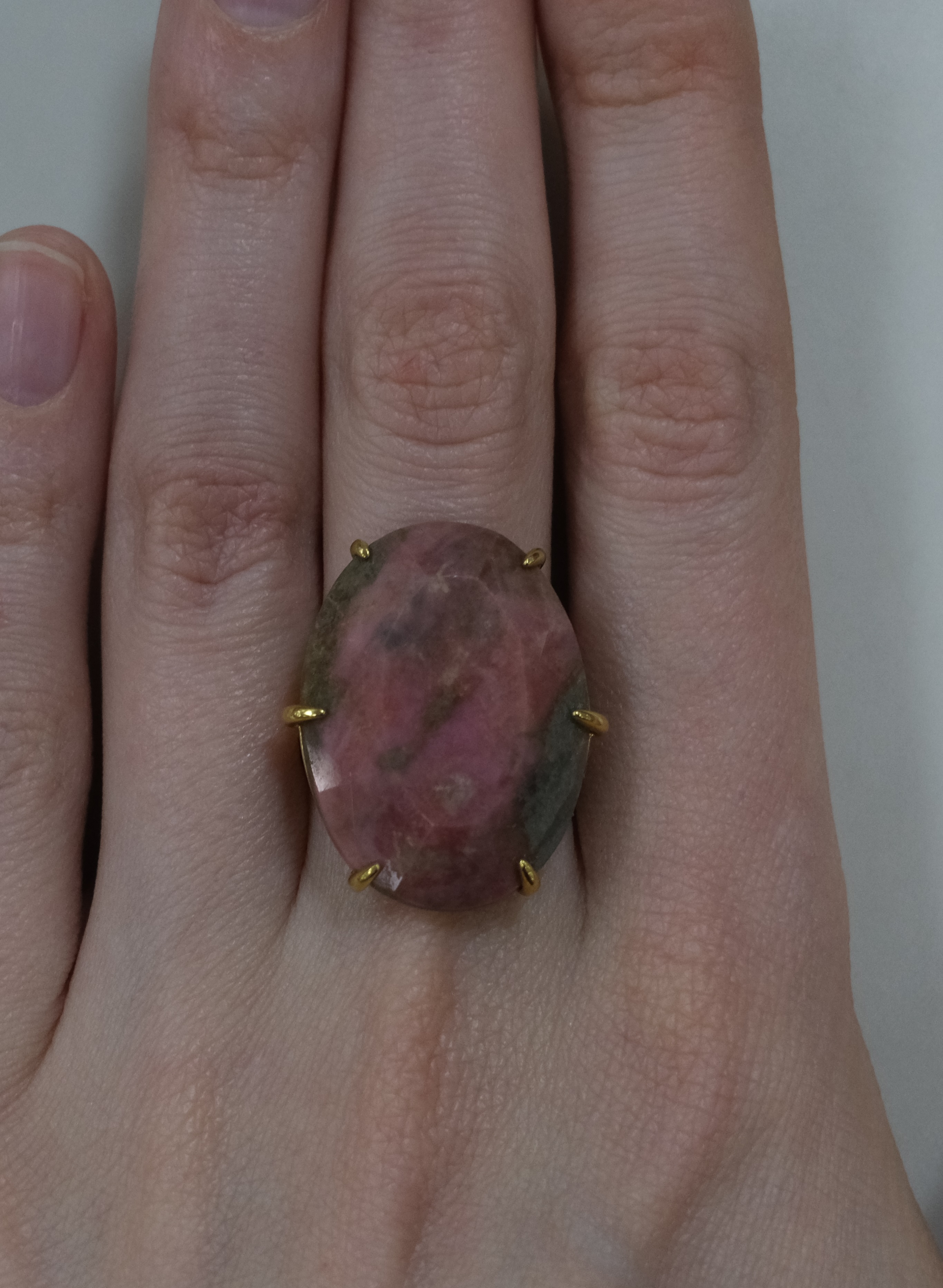 Серебряное кольцо с зеленой шпинелью и керамикой