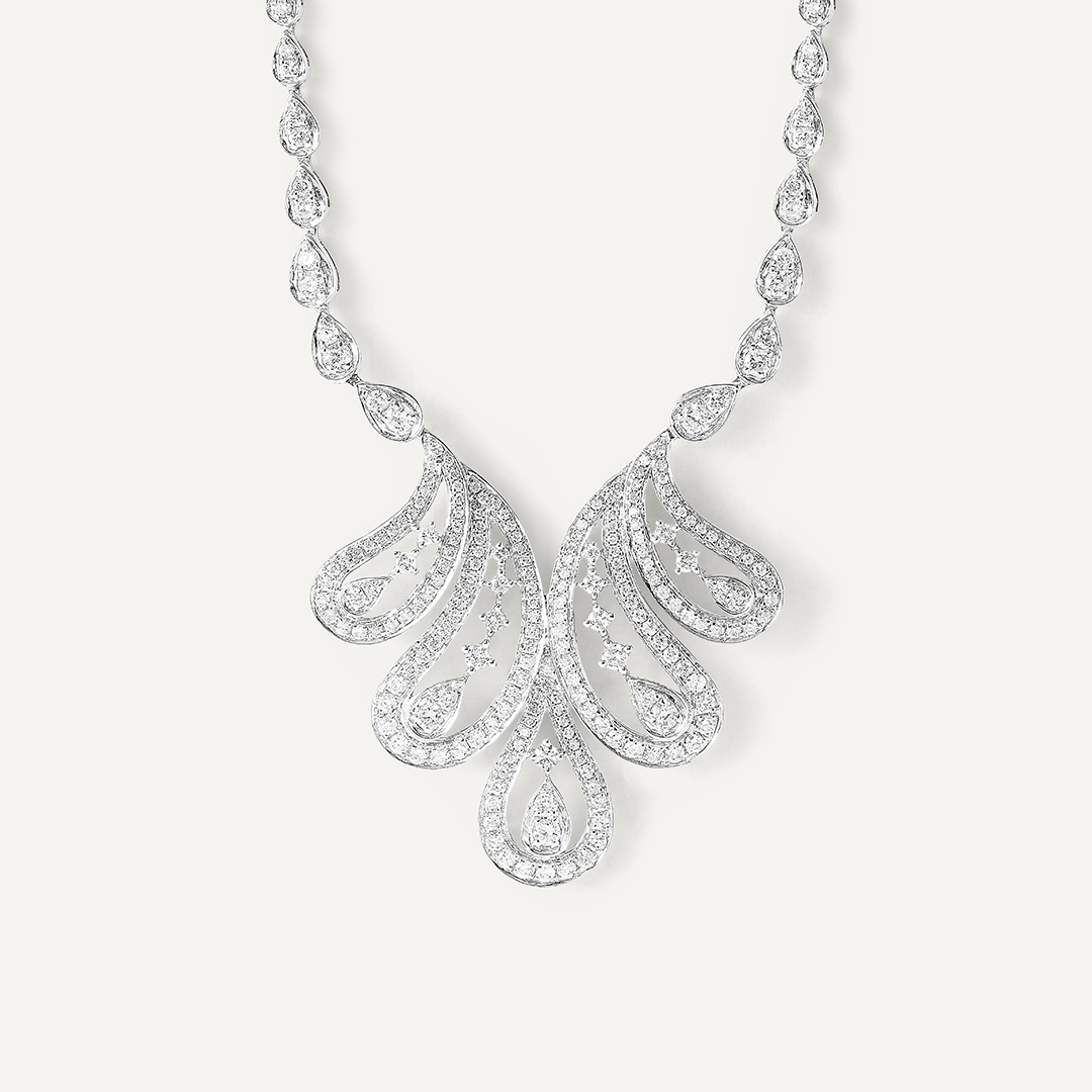 Золотое колье 585 пробы; белое золото; родий; плетение Якорное; вставки 4 Бр.Кр-57 0,083 3/6А; 1 Бр.