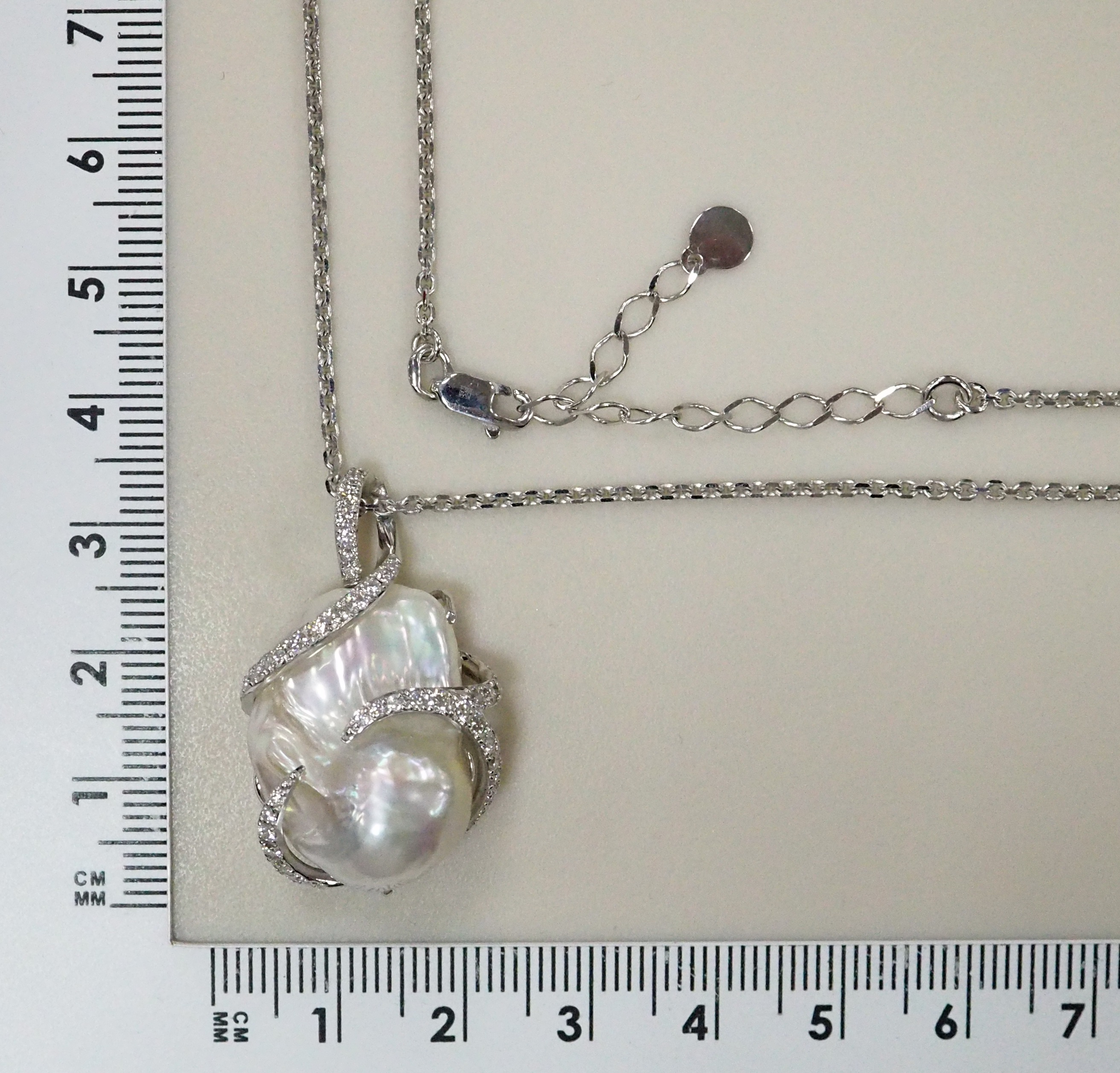 Колье из белого золота с фианитами "Крест" на леске
