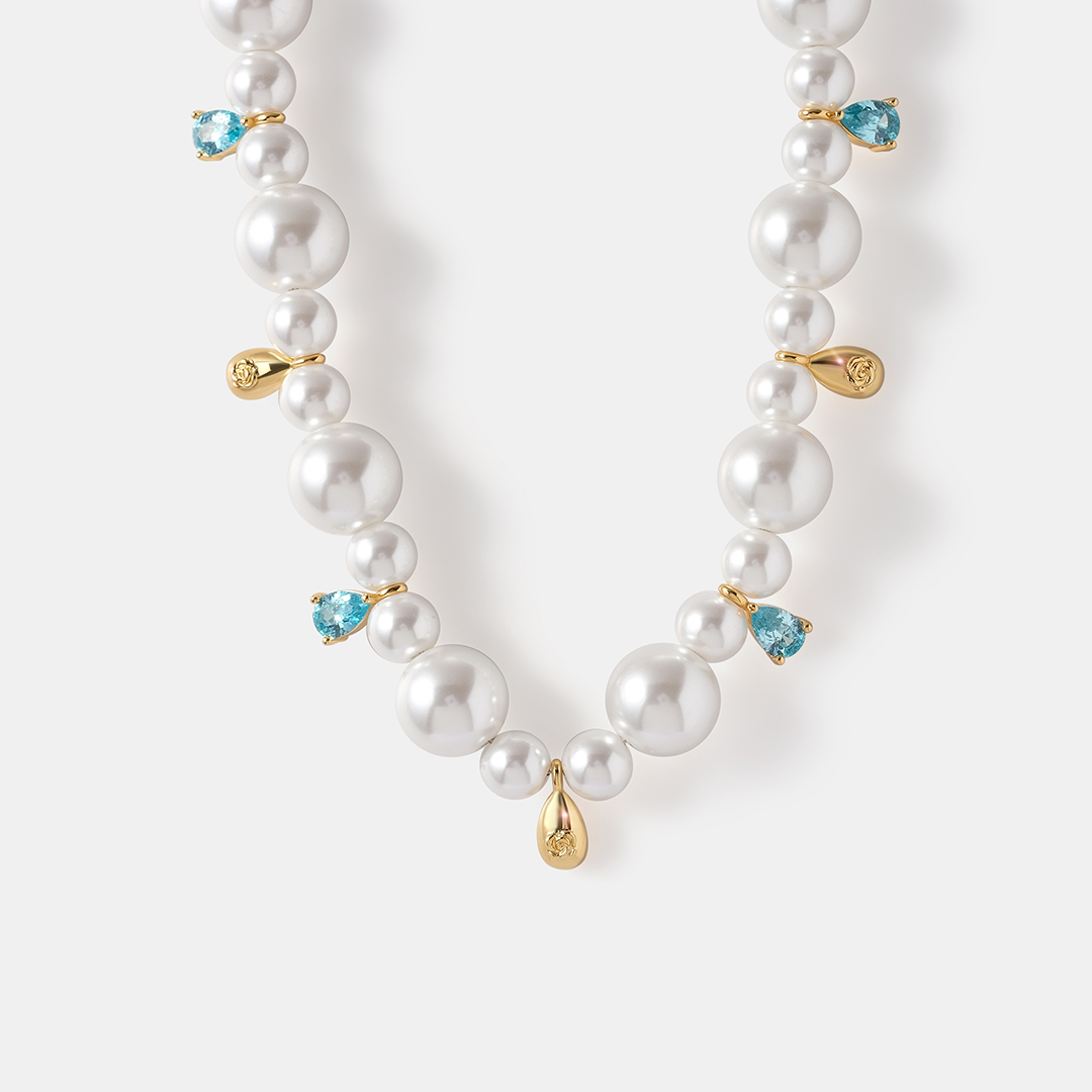 Колье из желтого золота с жемчугом Кеши "Звезда"